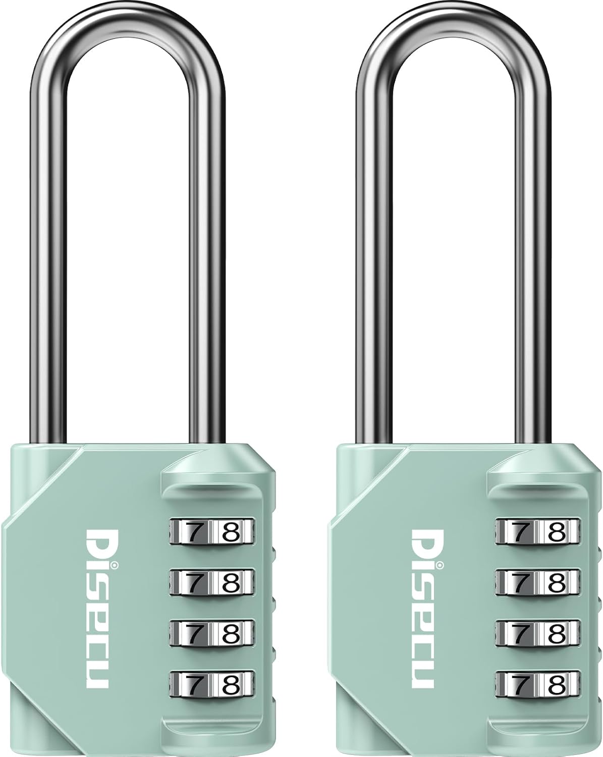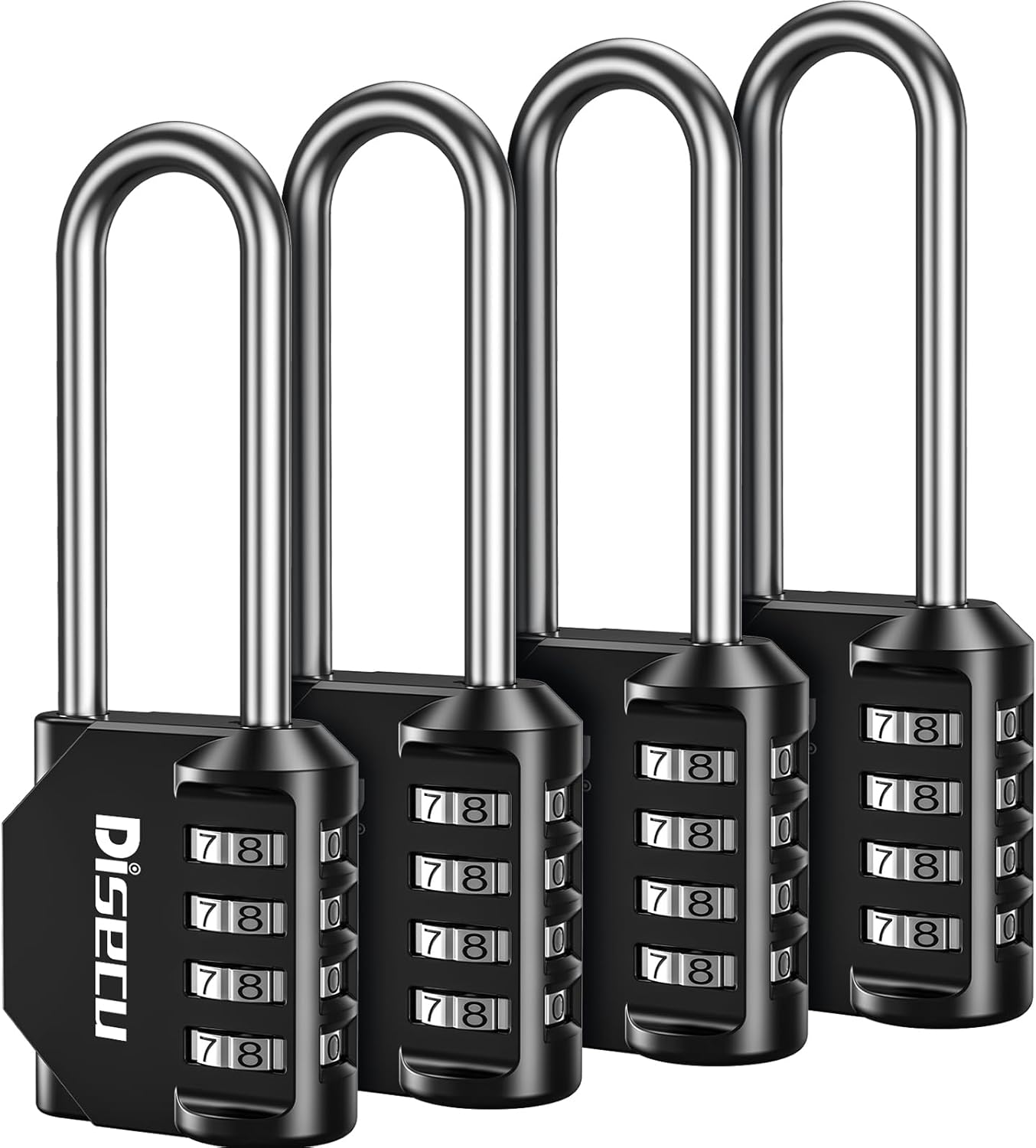 4 digit combination padlock is easy to use. Setting your own combination is simple and straight forward. The combo side window helps you to set the combination more clearly.It is suited for chest, luggage, gate, school, employee, gym & sports locker, case, fence, toolbox, hasp cabinet & storage and etc.Specifications:1. Combination Lock Dimensions: 4.55*1.71*0.87 in2. Combination Lock Shackle Diameter: 1/4 in3. Combination Lock Material: Plated steel and zinc alloy4. Combination Lock Weight: 5.0 ounces per unit5. Product Type: Long shackle combination padlocksHow to set or reset combination code?1. Dial to the current code (default 0-0-0-0) and pull out the shackle2. Turn the shackle 90° counterclockwise to the code setting gap3. Push the shackle down until the tiny pin is fullly inside the gap4. Turn the shackle another 90° counterclockwise to the code line, so that it stays down with out being pressed manually5. Scroll the numbers to set your own code6. Turn the shackle clockwise to the code setting gap until it pops upNote:● Please take picture the code number you have set.● Before you open the combination lock, the number should be well aligned with the side window.