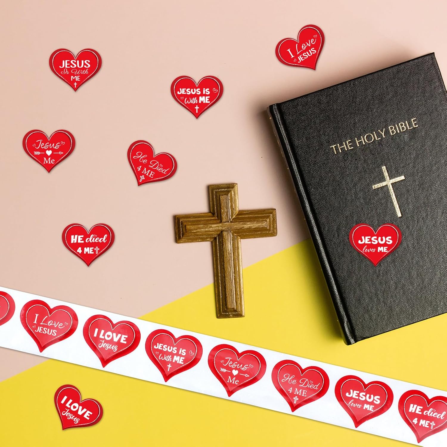 Feature: Beautiful appearance: Jesus loves me Christian stickers are made of high-quality self-adhesive paper, each covered with a film, not easy to fade or break, reusable and durable, its eye-catching color and appearance design are also a surprise. Fun and educational: This roll of religious stickers is not only a beautiful decoration, it is also a nice tool to help people learn about the story of Jesus and understand the faith in a fun and interactive way. Basic information: Quantity: 1 pcs Sizes: 1.18 inches (L) Material: Paper Color: red Package include: 1 x Jesus Loves Me roll sticker Notes: Manual measurement, please allow slight errors on size. Due to the screen display, the color of the item may differ slightly from the picture