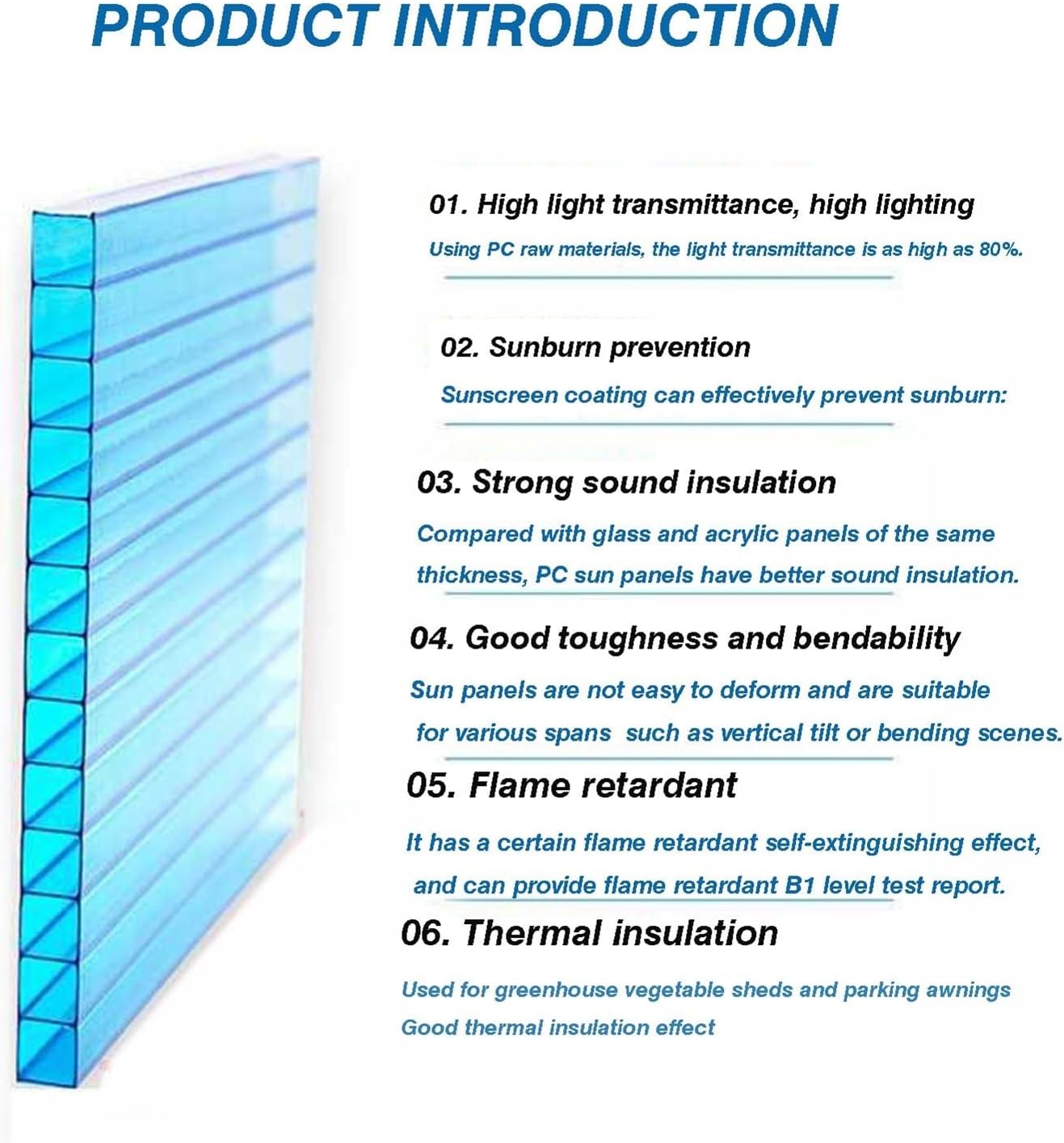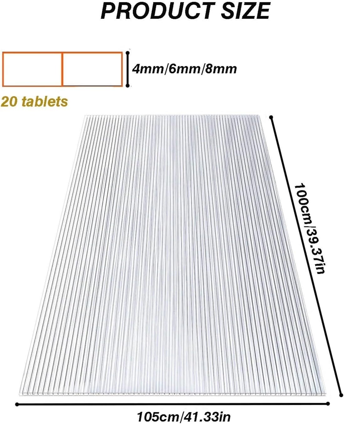 Welcome to my store!Whether used as a replacement part for greenhouses, cold beds, carports, or for DIY projects, this waterproof transparent roof panel is ideal for a variety of applicationsThe awning panels can withstand the harshest conditions, high and low temperatures, strong winds, heavy rain and hail.Our sizes can be customized, if the size you want is not in the size list, you can tell us and we will help you.Product Advantages:High thermal insulation; High impact resistance; Roofing sheet!Polycarbonate sheets are perfect for carports, pavilions and greenhouses.Transparent polycarbonate has high light transmittance and provides greater heat accumulation.Suitable for colder places, it is an ideal choice for industrial and commercial greenhouses.Product parametersName: Polycarbonate sheet / outdoor transparent rainproof sheet / fiberglass sheet / roof insulation boardWeight: 7kg (1㎡)Material: FPR polycarbonateThickness: 0.4/0.6/0.8mmLight transmittance: 85.7%Waterproof: 100%Installation: punchingDimensions: width x lengthPacking list12x polycarbonate sheetNote:We only sell polycarbonate sheets, other items are not included.Warm Tips: There may be 0.1-1cm error in manual measurement, please refer to the actual product.Warm Tips: The roof sheet is delivered in rolls, and the product received will be bent instead of straight, and it needs to be flattened and fixed before use; In addition, the roof sheet is very versatile, you can DIY various projects with your family in your spare time, and your creativity is unlimited;