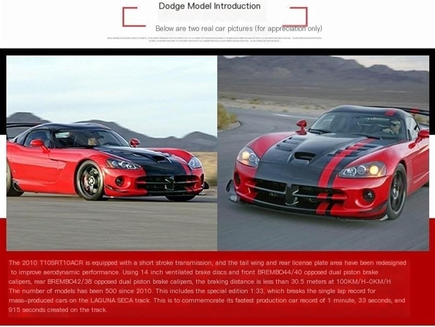 - Car model ratio: 1:24- Origin: Guangdong- Product category: Racing car- Specification: 1 car/box- Control method: force control- Packing method: Color box- 3C configuration category: Toys for children over 15 years old- Color: SRT10 ACR red + black- Applicable age: Youth (15-35 years old)- Unit weight: 0.458kg- Product volume: 24.2cm * 12.5cm * 10.2cm