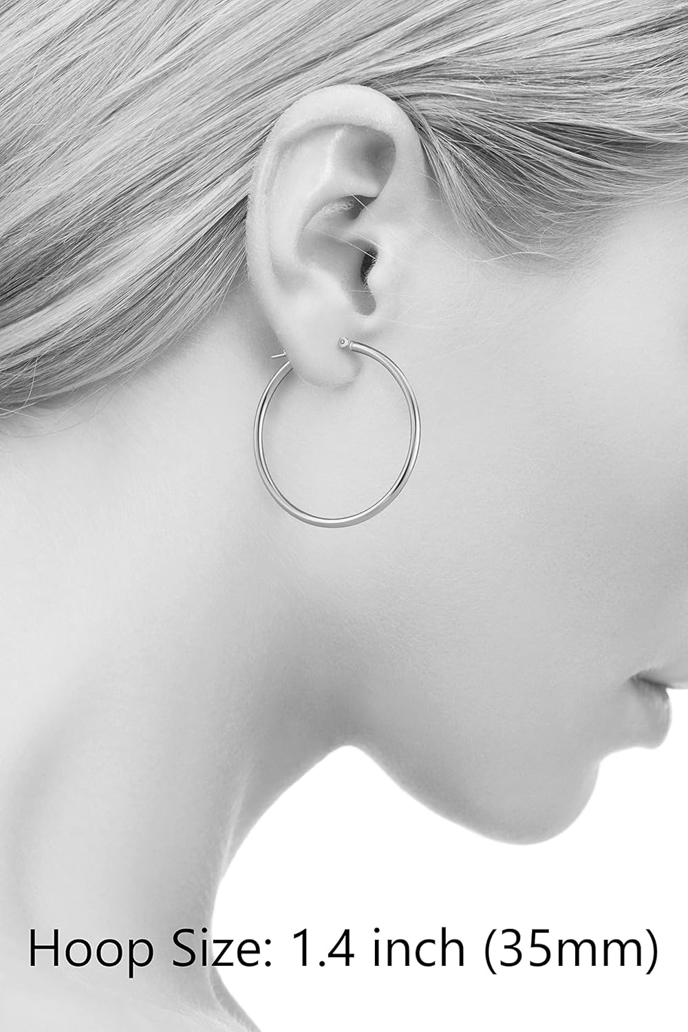 Give the gift of real gold that has timeless elegance with these lustrous polished round hoop earrings. Enjoy the tried and true beauty of 14k gold hoop earrings. High Quality Hinges and Clutches that are easy to close and secure to wear. Made with pride in USA Guaranteed 14k Real Gold and "14k" Stamped. NOT gold plated or filled 14k Rose Gold, Guaranteed 14k Real Gold and "14k" Stamped. NOT gold plated or filled