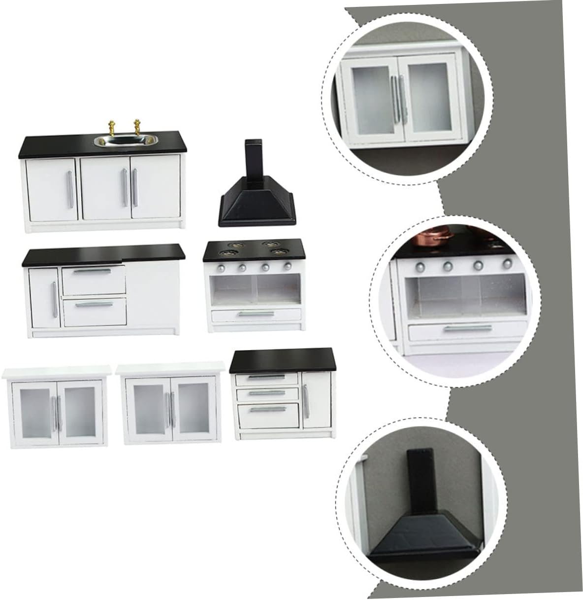 Package List 1 x Mimi Cooking Bench 1 x Mimi Mimi Long Plane Table 1 x Mimi Short Plane Table 2 x Mini Hanging Cabinets 1 Characteristics - Cooking Bench Size: About 8.9x3x6.3cm/3.5x1.18x2.48in Mini Kitchen Accessory - Color: Black Doll House Gas Stove - Kitchen Size: About 7x4.5x6.2cm/2.76x1.77x2.44in Mini Wooden Furniture - Hanging Cabinet Size: About 8.9x3x6.3cm/3.5x1.18x2.48in Doll House Furnishings - Short Plane Table Size: About 8.4x5x6.1cm/3.3x1.97x2.4in Tiny Kitchen Furniture - Material: Small Furniture Prop - Long Plane Table Size: About 12.7x5x6.1cm/5x1.97x2.4in Doll House Kitchenette - Water Channel Size: About 12.4x5x6.1cm/4.88x1.97x2.4in Miniature Gas Stove - The material is safe and , which is wear resistance and practical for the long time use Mini Furniture. - Mini furniture is people who like DIY and can create any scene you want Doll House Kitchen - They can bring you a sense of a comfortable warmth. Great present for friends and colleagues Wooden Mini Furniture. - It is very wonderful and decorative to match with your other household model decoration Mini House Accessory. - Small and appropriate weight, you can easily it Mini Kitchenette.Goods InformationMini House Accessory They are mini furniture model, unique and safe.Mini House Ornament Also, your mini house will have a , because they are stylish and unique mini house decoration.Doll House Furnishings Are you looking for mini decorations for DIY mini house? These can be your
