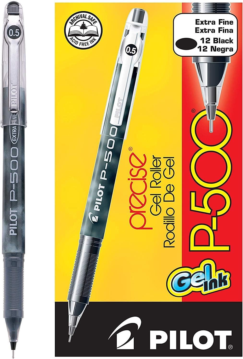 Pilot® Precise P-500 Gel Rollerball Pen, Extra Fine, 0.5mm, Black Barrel/Ink, Dozen