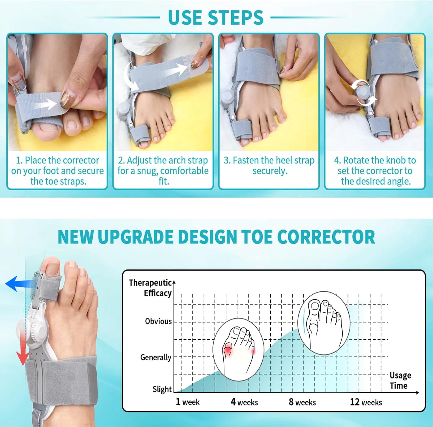 Trusted by Athletes and Physical Therapists - Do you have repeated ankle sprains? This ankle stretch board is an excellent tool for strengthening ankles and supporting knee rehab. This ankle stretcher helps improve balance, boost mobility, and build foot strength—making it a go-to choice for athletes, rehab professionals. In addition, This ankle board can be used together with 5 elastic bands to further stretch the feet and ankles. You can clearly feel the foot pain relief after several uses Triple-Strap Non-Slip Stability for Secure Bunion Relief - Unlike other bunion corrector that often slip or shift during movement, our toe bunion correction design features three stabilizing straps around the heel, instep, and toe, combined with a secure anti-slip heel strap. This ensures the bunion splint stays firmly in place whether you’re walking, standing, or relaxing at home. Effective bunion straightener for women men, it provides consistent alignment and comfort throughout the day