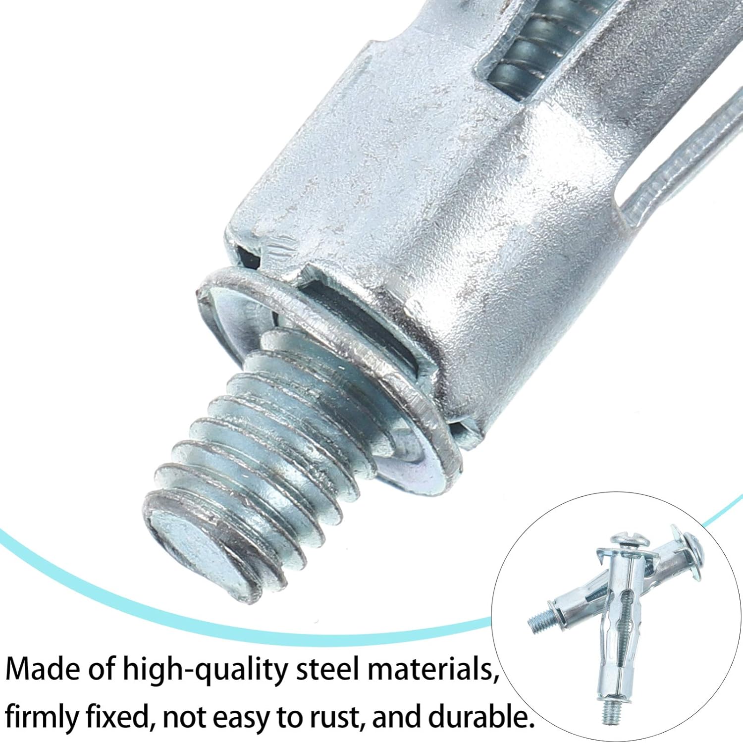DescriptionThe anchor consists of a removable machine screw that's threaded into a metal sleeve with five expansion legs. As the screw is tightened, these expansion legs expand tightly against the back of the wall. Thus, providing strength, strong hold and even load distribution to keep your fixtures safely secured to the wall. Features- Color: Silver.- Material: Steel.- Size: 4.70 x 1.70 x 1.70cm/ 1.85 x 0.67 x 0.67 inch.- Specially designed heavy duty steel hollow wall anchors with screws to provide greater strength to support the weight of heavy wall hangings. - The expansion legs ensure even load distribution and the large flange prevents pull into the base material. - The anti-rotation barbs secure fixing during installation for superior tight grip and strong hold. - Heavy-duty cavity wall metal anchors are available in various sizes for all your needs.- The anchor consists of a removable machine screw that's threaded into a steel sleeve. - Color: sliver.- Size: 4.7X1.7CM.Package Including20 x bolts (5 x 37)