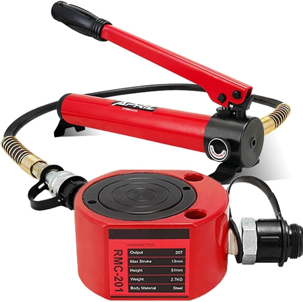 Wide ApplicationsHydraulic jacks can be widely used in electric power, chemical industry, steel, bridge, shipbuilding, machinery and other industries. Hydraulic cylinders are not suitable for use in cars. Equipped with various accessories, it has multiple functions such as lifting, jacking, shoveling, splitting, etc., and can be quickly installed with quick connectors.Easy to CarryThe hydraulic hand pump is small in size, which is especially beneficial in narrow spaces. It offers portability and flexibility while delivering massive lift.Product parameters:CP-180 manual hydraulic pump:High pressure: 700kg/cm²Oil storage capacity: 350ccWeight: about 5.2kg20T Hydraulic jack Cylinder:Stroke: 13mmBody height: 54mmWeight: 2.7kgNote: The hydraulic jack is suitable for vertical, horizontal and inverted orientations, but not for inclined use. Requires attachment to a firm, flat lifting surface, not a soft or rough surface