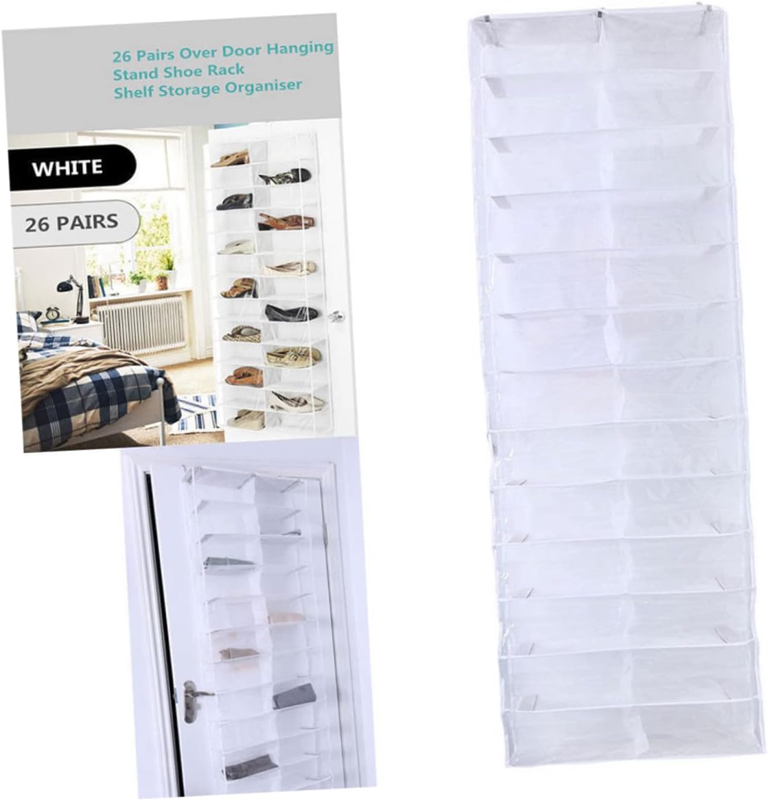 Package List 2 x Hanger Shoes Organizer Features - Color: White over the door hanger holder. - Material: PVC, nonwoven fabric, metal shoe shelf. - Size: 55x16x5cm shoe rack. - mounting, to assemble, no extra required shoe storage. - Includes a convenient hook to position the organizer over the door, closet or cabinet shoe organizer. - It will save large space for your home. Reasonably utilizes the unused storage space to the maximum degree shoe closet. - Can keep your shoe collection neatly organized for a bedroom, closet, dorm room, apartment living, and other tight living spaces shoes organizer closet. - Great large capacity, 26 divided shelves offer enough storage for pairs of shoes, slippers, belts, scarves and other small items.Goods Descriptionover the door hanger holder You can quickly and easily it over a closet or bedroom door for neat and orderly storage.shoe closet Idea for space saving in your home.shoes organizer closet Each 6 large pocket which can hold 26 pairs of shoes and some other small items.shoe organizer Still confused with the messy shoes on the floor or the space of the shoe shelf for storage? Well, let's bid farewell to these trouble with these over the door hanger shoes organizers