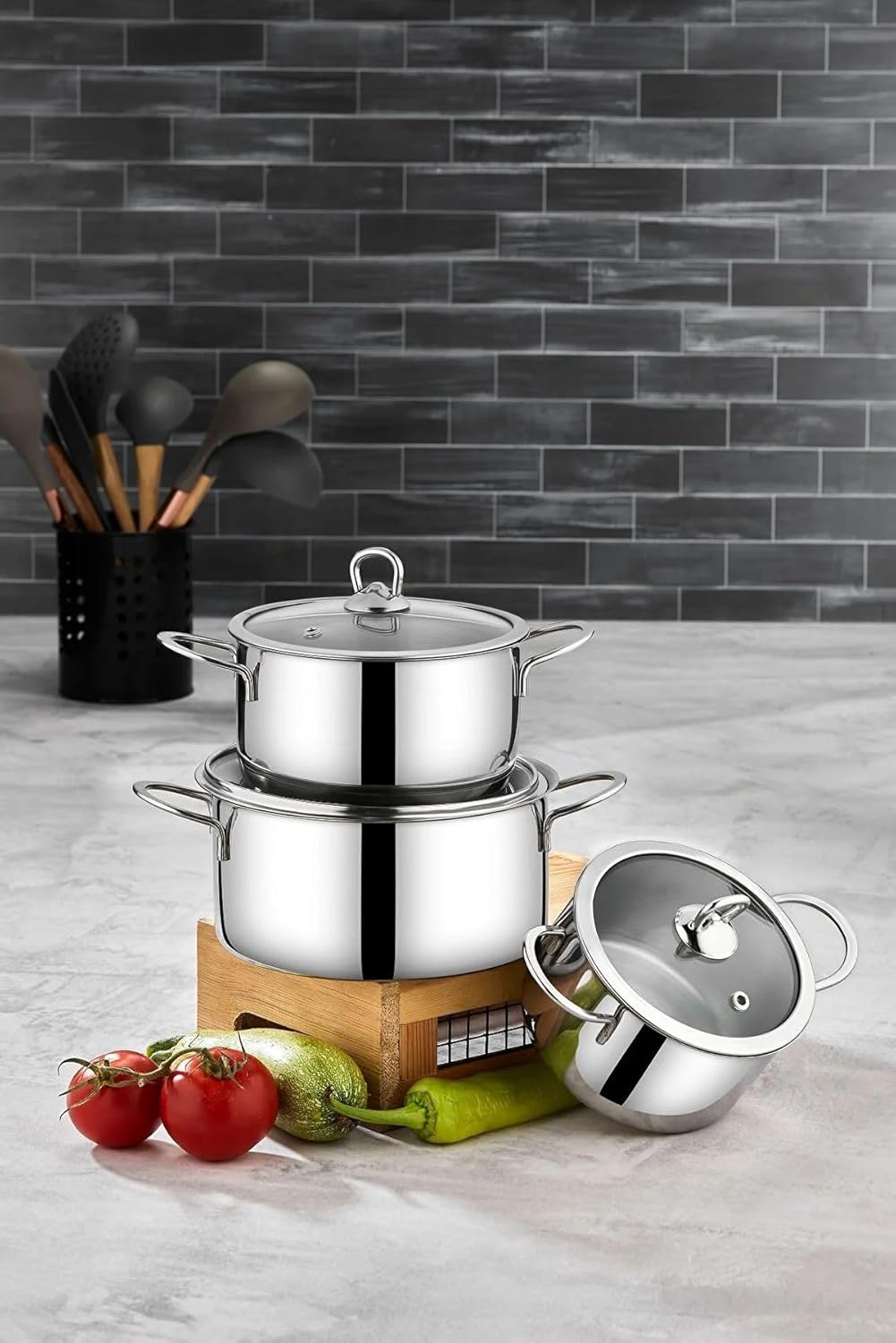 Elevate your cooking experience with this essential 3-piece stainless steel cookware set, designed to be your reliable kitchen companion. The set includes durable pots and pans crafted from high-quality stainless steel, making them perfect for everyday cooking tasks. These versatile pieces are built to withstand regular use while maintaining their sleek appearance. The stainless steel construction ensures excellent heat distribution for consistent cooking results. Whether you're a novice cook or an experienced home chef, this cookware set provides the fundamental pieces needed to create delicious meals. The classic design makes it an ideal gift for newlyweds, new homeowners, or anyone looking to upgrade their kitchen essentials. Each piece is thoughtfully designed for practical functionality and long-lasting performance, making this set a valuable addition to any kitchen arsenal.