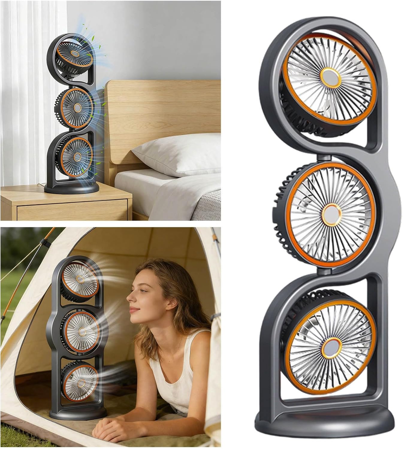 Key Bullet Points:105° Auto Oscillation + 360° Manual Tilt – Flexible airflow coverage, perfect for desk work, sleeping and daily cooling.5 Adjustable Wind Speeds – Customize cooling intensity easily with one button to fit different comfort needs all day long.Quiet Silent Operation – Low noise running creates a peaceful environment, ideal for studying, working, sleeping without disturbance.USB Rechargeable & Portable – Compact tower design with long battery life; great for home, bedroom, bedside, office and travel use.Durable Premium Build – High-quality sturdy material ensures lightweight portability plus long-lasting stable performance.Product Description:Material: ABS Plastic + Electronic ComponentsColor: as shown in the picturePackage weight: 940gPackage size: 46×16×16cm