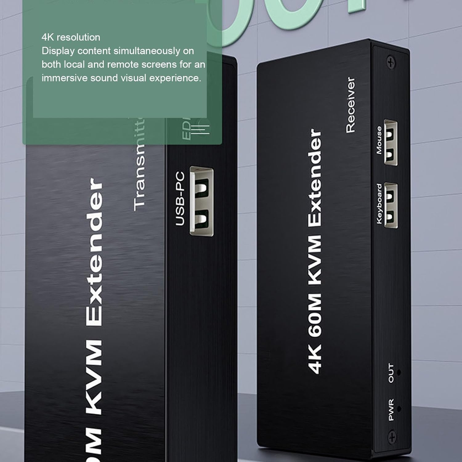 Specification: Item Type: KVM USB Extender Input Resolution: 4k, 1080p, 720p, 576p, 576i, 480p, 480i Output Resolution: 4k, 1080p, 720p, 576p, 576i, 480p, 480i Maximum Bandwidth: 340MHz Maximum Output Rate: 3x3.4Gbps Input/Output Cable Length: ≤10m AWG26 Standard Cable Input Video Signal: 0.5-1.5Volts p-p Output DDC Signal: 5Volts p-p (TTL) How to Use: Plug and play Package List: 1 x Transmitter 1 x Receiver 2 x Cable 1 x USB Cable 2 x Adapter 1 x User Manual