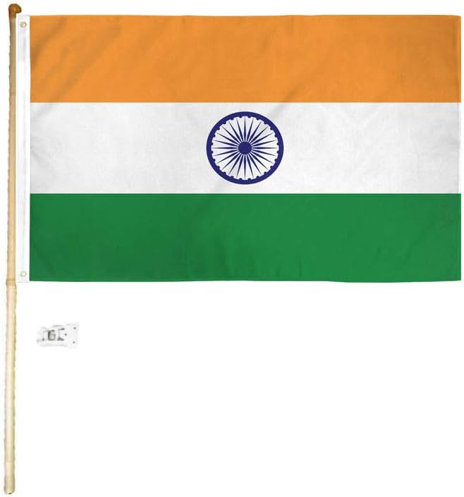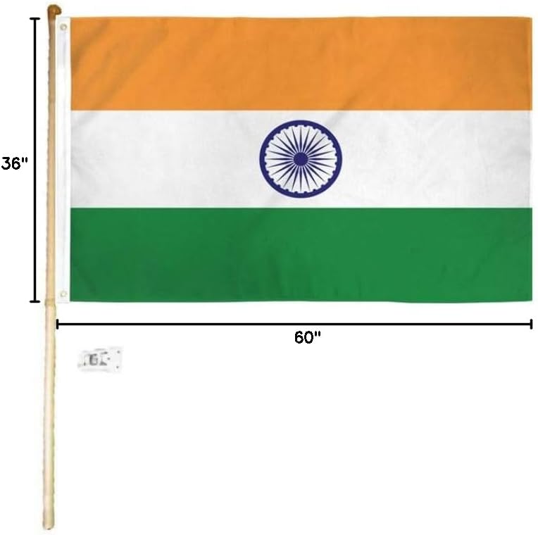 3x5 3'x5' India Polyester Flag With 5' (Foot) Flag Pole Kit With Wall Mount Bracket & Screws (Imported)
