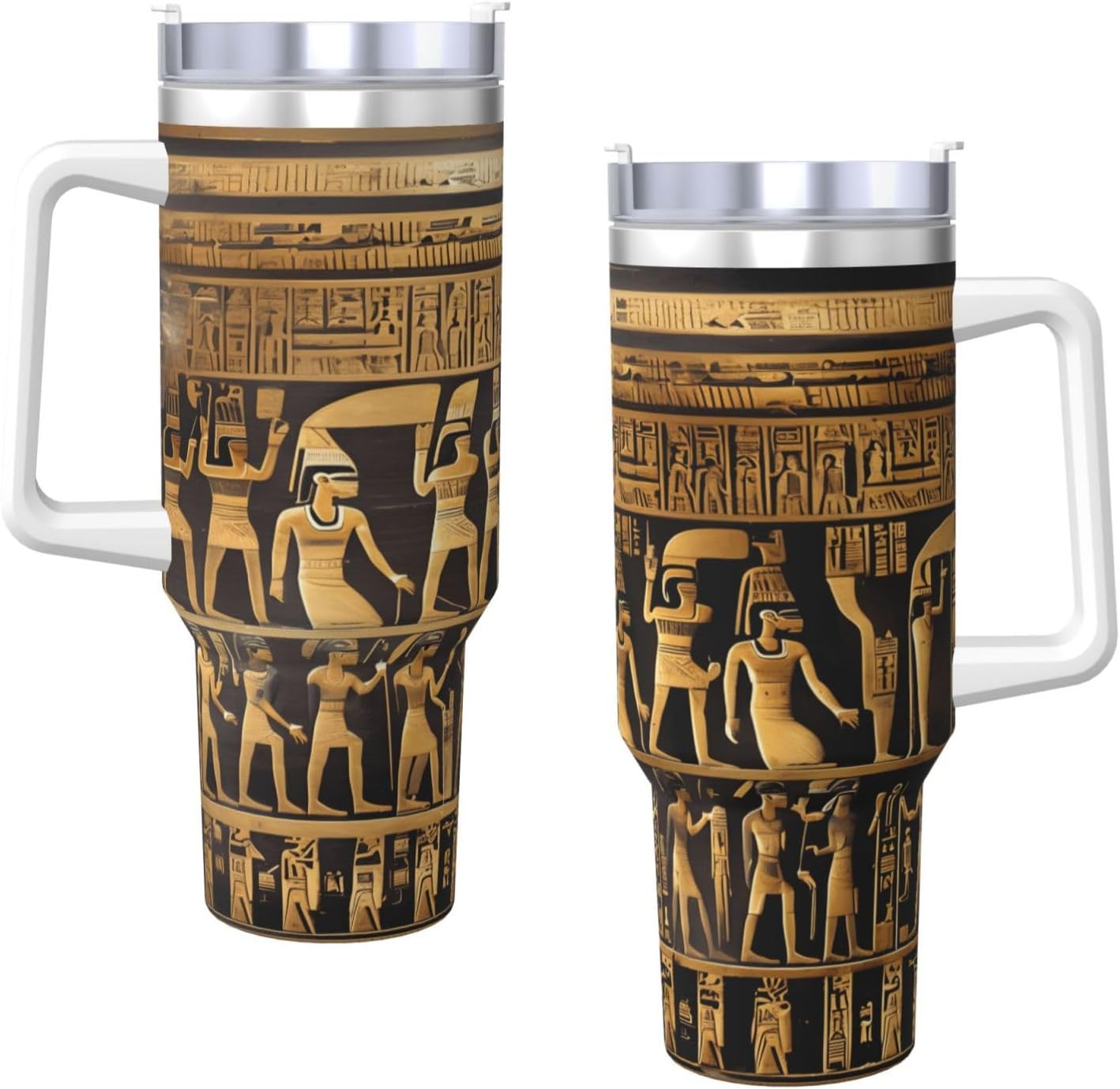 This Egypts Hieroglyphics Print Ice Bully Cup features a double layer stainless steel design that can be used for a long time without rusting. The lid has good sealing to prevent water from overflowing, and it is easy to unscrew for filling and cleaning. It can keep water, coffee, or drinks warm or cool for hours and is suitable for travel, camping, and driving.