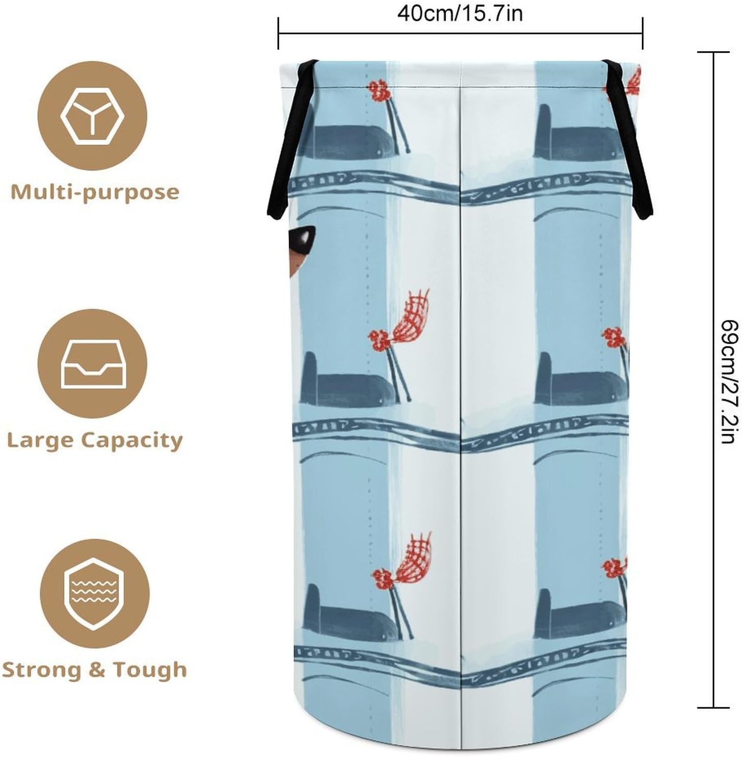 Transform your daily routine with our Large Capacity Collapsible Laundry Hamper—the smart, stylish answer to home organization chaos. Measuring a spacious 40cm in diameter and 69cm tall, this generously sized hamper easily accommodates 3-4 days’ worth of family laundry, bulky bedding, or seasonal clothing. Its tightly woven, high-quality polyester fabric naturally resists moisture and odors, keeping your linens fresh and ensuring the hamper remains a reliable, long-lasting storage solution for any room in your home. We designed every detail for real-life convenience. The firm, tape-edge handles won’t dig into your palms, making transport comfortable. The structured base ensures it never collapses under weight. When laundry day is over, or if you need to stow it away, the ingenious collapsible feature allows it to compress in seconds, becoming a slim panel for effortless storage. This makes it an incredibly versatile home storage asset—use it in the bathroom for towels, the linen closet for extra blankets, or the garage for sports gear. Elevate your home organization with this functional and sleek hamper—reclaim valuable floor space, simplify your laundry routine, and enjoy a tidier, more harmonious living environment.