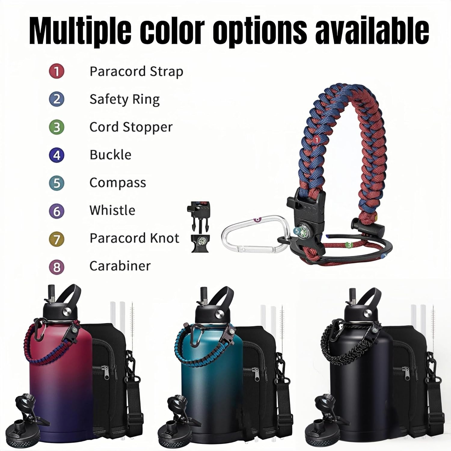 | Included Components | 1*Carrying Pouch, 1*Paracord Handle, 1*Spout Lid+1*Straw Lid, 1*Straw Brush, Straw |