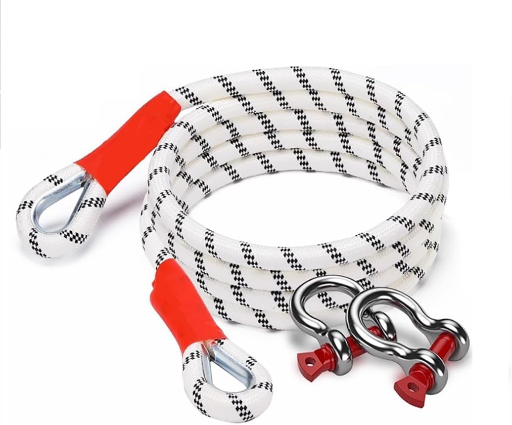 To deal with these accidents economically and efficiently, you need a tow ropeSpecification:Product Name: Car tow ropeMaterial: Polyester wire material + American full steelColor: Beige, whiteSizes: 3 meters 3 tons , 3 meters 5 tons , 3 meters 10 tons , 4 meters 3 tons , 4 meters 5 tons , 4 meters 10 tons , 4 meters 18 tons , 5 meters 3 tons , 5 meters 5 tons , 5 meters 10 tons , 5 meters 18 tons , 5 meters 30 tons , 7 meters 5 tons , 7 meters 10 tons , 7 meters 18 tons , 7 meters 30 tons , 9 meters 18 tons , 9 meters 25 tons , 9 meters 30 tonsRope Breaking Strength:44100 lbsApplicable to: Small and medium-sized trucks and SUVPackage Included:Tow Rope x1Steel Buckle x2Storage Bag x1Notes:1.Wear and tear can lead to a decrease in breaking strength. Before use, it is necessary to check whether the product is damaged. If there is any damage, please replace it promptly.2.Please use this product on the towing ring. This product is not suitable for tires or towing balls.3.After wetting the product, please air dry it promptly and store it in a dry state.4.Please do not expose this product to sunlight or high temperatures for long periods of time.5.Please keep a distance from bystanders during the towing process.