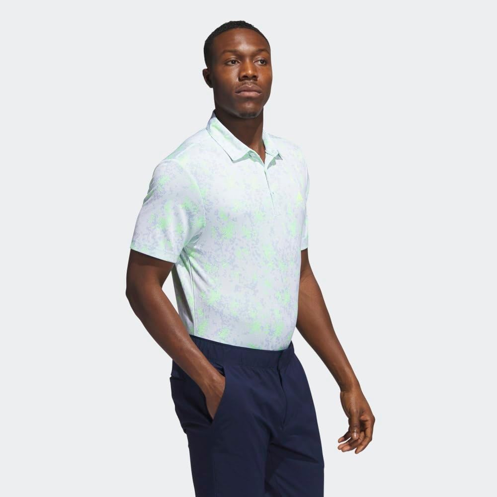 Go from the tee box to the green in style in this men's adidas golf polo shirt. Made with a soft jacquard pattern, it's designed to give you a full range of motion from backswing to follow through. A lively allover print adds a touch of flair to your look. Made with a series of recycled materials, and at least 70% recycled content, this product represents just one of our solutions to help end plastic waste.