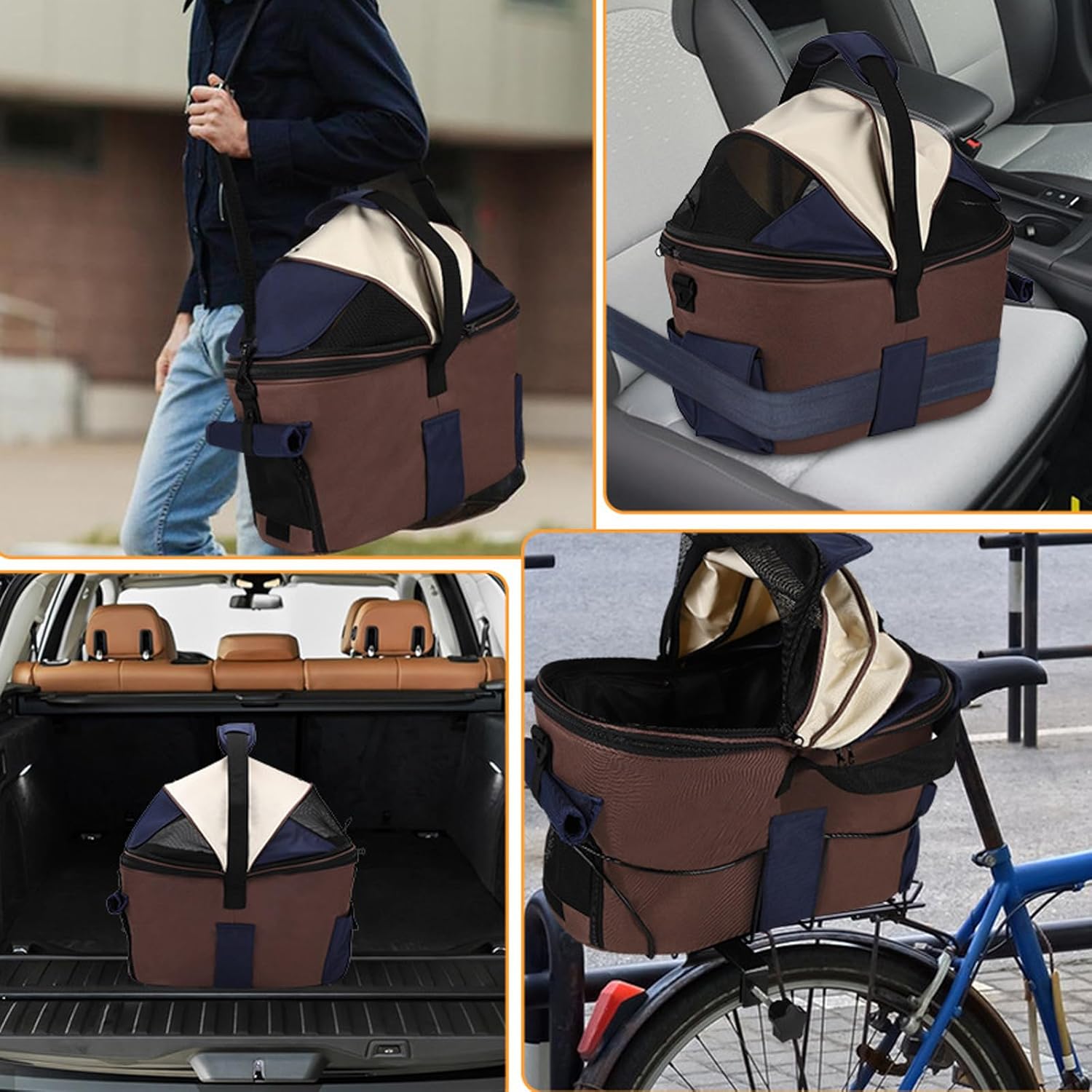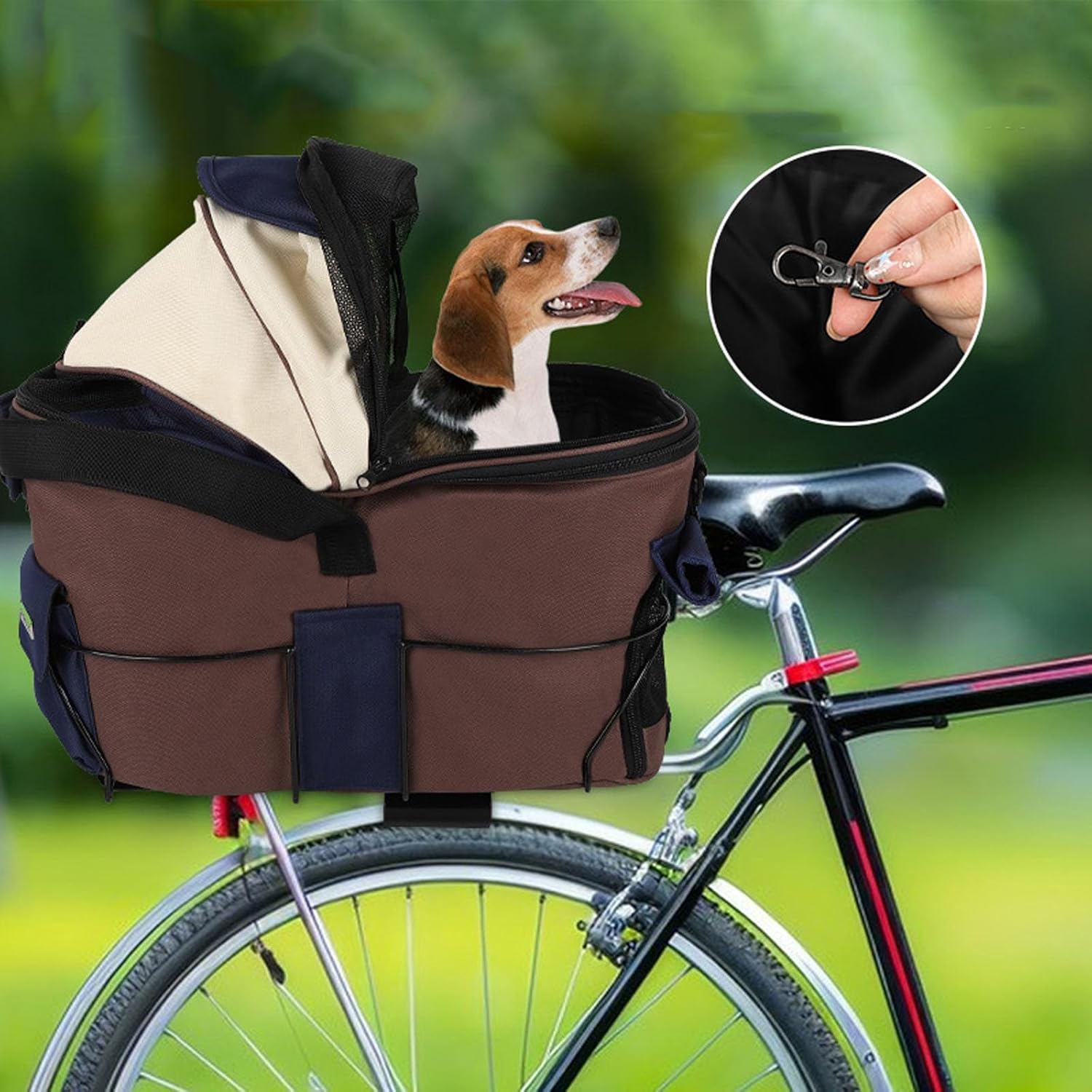 Adjustable Bike Pet Carriers With Removable Padding Large Interior Space For Dog Cats Cycling Trip Features: Crafted with durability, breathable meshes fabric, this versatile bike pet carriers ensures optimal airflows for your pet ' s comfortable during rides and doubles as an everyday dog backpack for multiple scenario use Featuring a light weight foldable design and spacious interior, this canvas carriers accommodates small dogs / cats up to 15lbs while maintaining compact portability for cycling adventures or commutes Ideal for active pet owners who prioritize safe outdoor transportation, whether cycling enthusiasts, commuters, or travelers seeking pet friendly mobility Securely attaches to bicycles frames for park explorations, transforms into a carriers during grocery runs, and serves as a portable pet bed for road trips or public transit Engineered with washable, scratch materials and reinforced stitching, this multifunctional pet travel bag simplifies maintenance while ensuring long terms Specifications: Dimension: 43×22×26×20cm / 16.92×8.66×7.87×10.23in Component: Canvas Package Includes: 1pc Pet cart basket Note: 1.Please allow 1-2cm errors due to manual measurement, making sure that you will not mind before order 2.Due to the differences between different monitors, the picture may not reflect the actual color