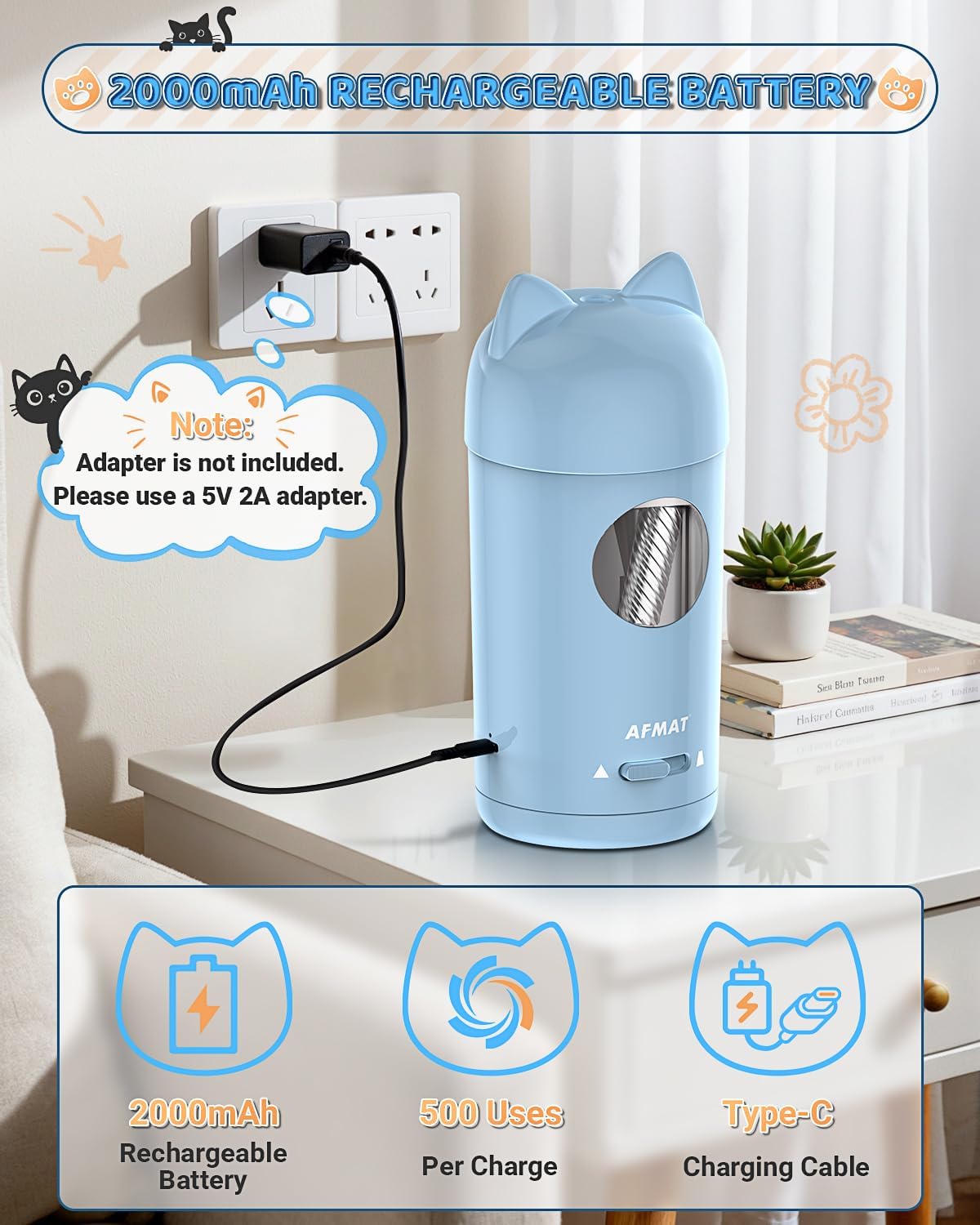 AFMAT PSX9 Electric Pencil Sharpener for Kids, Fully Automatic Pencil Sharpener, Auto in & Out, for φ7-8mm No.2/Colored Pencils, Rechargeable & Cordless, Cute Cat Pencil Sharpeners for Classroom, Home