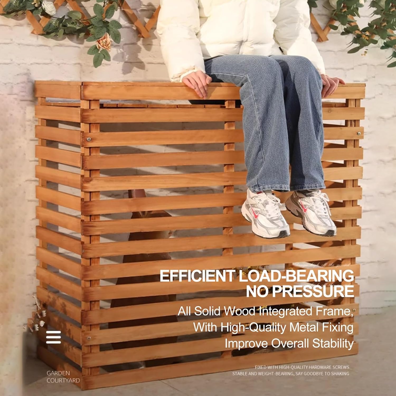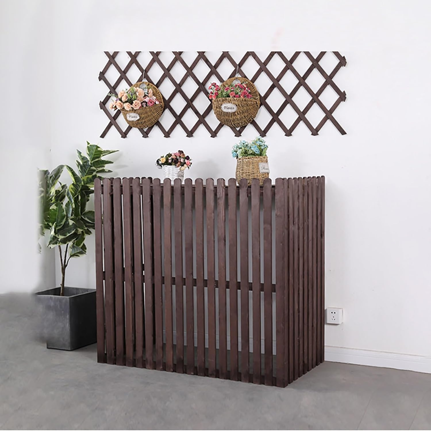 Air Conditioner Fence Outdoor Wood Privacy Fence Screen Wood Air Conditioner Privacy Screen Air Conditioning CoverSay goodbye to the unsightly view of exposed machinery and hello to a more visually appealing environment.Designed with durability and functionality in mind, this rack features a sturdy outer material and an AC hood to provide reliable protection and improve the efficiency of your AC unit.Crafted from durable materials, our cover is built to withstand the elements. Rain, wind, and UV exposure are no match for its weather-resistant construction, ensuring long-lasting performance year after year.During the colder months, our cover serves as a barrier against harsh weather conditions, keeping your air conditioning unit safe from snow, ice, and debris. When summer arrives, it seamlessly transitions into a privacy screen, shielding your outdoor area from prying eyes while allowing airflow to keep your AC unit functioning efficiently.Features: Sun Protection Extends the Life of the Outdoor Unit Prevent Sand and Dust from Clogging the Cooling Fins Noise Reduction! Beautiful and Environmentally Friendly! Specifications: Material: Wood Color: Gray , White , Yellow , Brown , Blue , BlackProcess: High Temperature Baking Package Includes: 1 * Air Conditioner Flower Stand Note: Due to the Different Monitor and Light Effect, the Actual Color of the Item Might Be Slightly Different from the Color Which is Showed on the Pictures. Please Forgive 1 Cm/0.39"-3 Cm/1.18" Measudeviation Due to Manual Measurement.