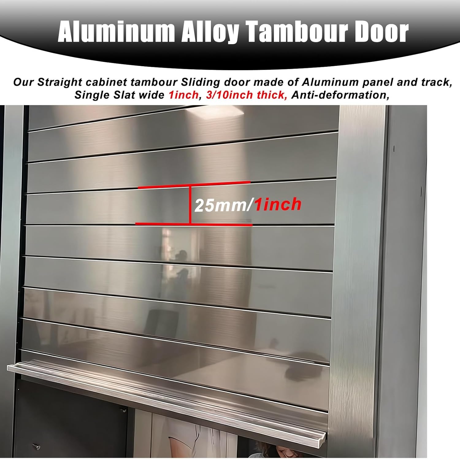 Still stuck with cluttered small areas? Still upset you can’t maximize every inch of cabinet space? Our Tambour doors tackle all your space issues without hassleSpecification:Name:Cabinet Tambour DoorMaterial:Aluminum Panel+ Rail + Roll ShaftSize:Customizable (Measures inside width, inside height, inside depth)Single Slat wide 1inch, 3/10inch thickInstallation--No wheel axle, open mounting track, Cabinet In Depth ≥11 4/5inchUse: Stop at will (Manual push-pull)Features:Easy to Clean.Manual Push-Pull Design.Smooth pushing and pulling.Invisible and takes up no space.Waterproof & Moisture-Resistant.Surface mounted rail, Easy Installation.Suitable for kitchen, cabinets, appliance garage, spice sauce cabinet, vanity cabinet, campervan storage bins.Package Contents:1 x Foldable Door( Includes Installation Accessories )Notice:Depth must be ≥ 35cm/ 14inch.Measures the inside width, inside height, inside depth of your cabinet.Manual measurement, there will be 1-3cm error, please understand.If a slight odor is normal, it will disappear within two to three days.