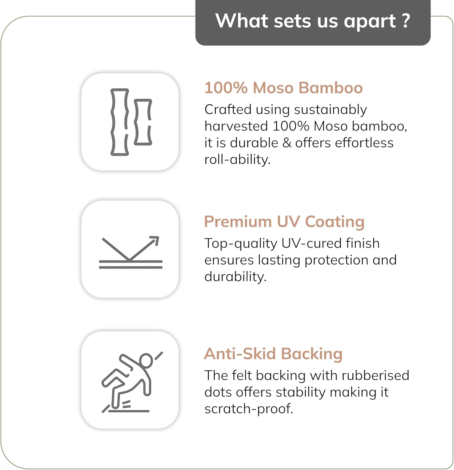 Our patented Bamboo Office Chairmats have introduced?style to what was formerly an unattractive and purely functional accessory. Naturally elegant bamboo is more durable than a plastic mat and adds a charming organic touch to any area.