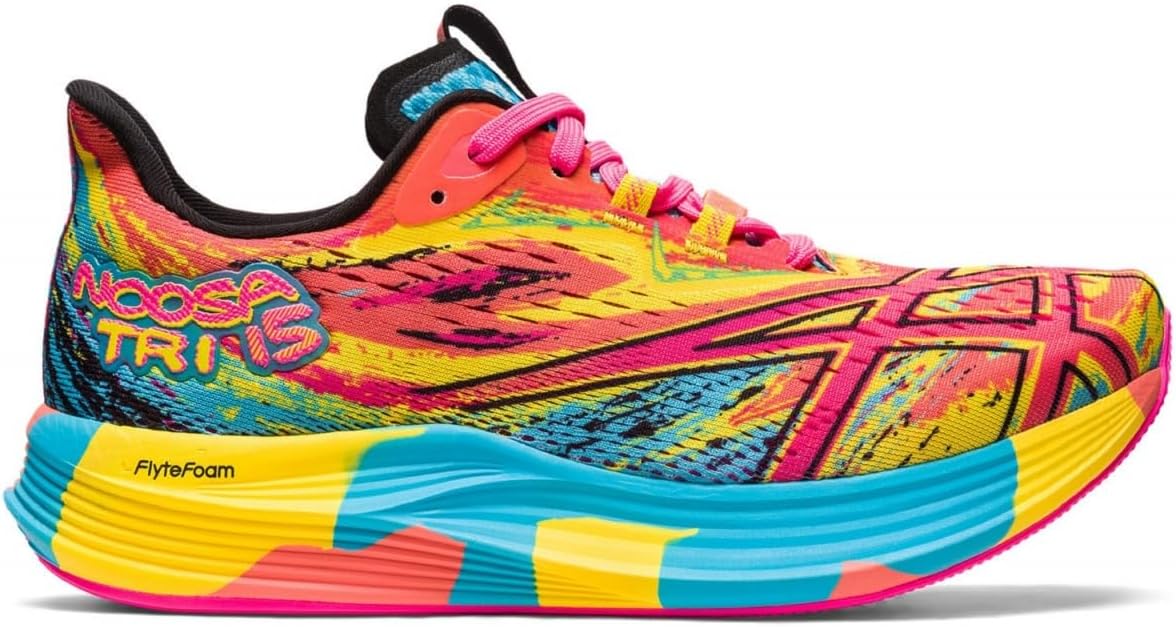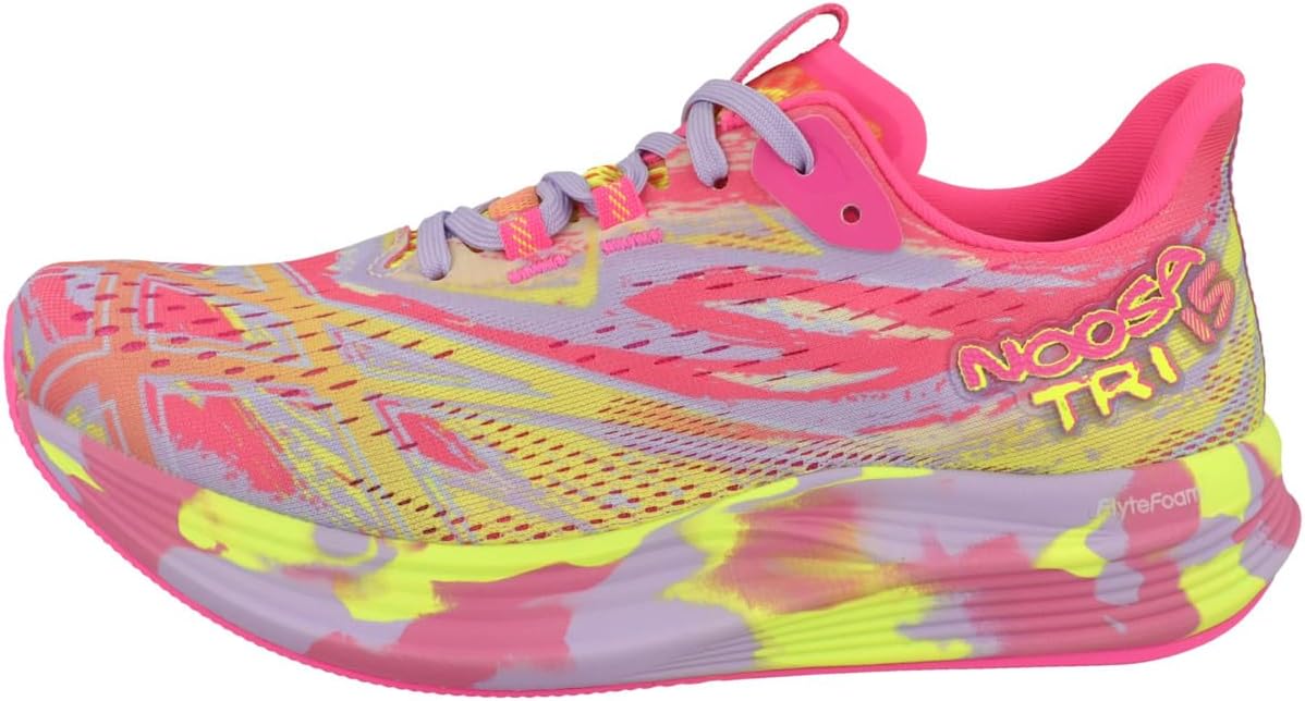 The NOOSA TRI™ 15 shoe brings back a version inspired by an archival model with a sock-like shape. It is characterised by a lightweight construction and effective support underfoot. The striking colours and patterns on the reinforced mesh upper are inspired by early GEL-NOOSA™ models from the 2000s. Convenient features such as pull tabs on the tongue and a toggle closure lacing system make it easy to put on and take off. This makes them more practical after the end of the triathlon swimming track or to leave the house faster. With GUIDESOLE™ underfoot technology, these shoes help reduce ankle flexion. The curved design allows you to save more energy and experience gentle forward rotation.