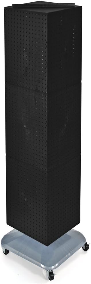 Your display is key to maximizing sales. Presentation of your product, easy customer accessibility, and visual appeal all contribute to your bottom line. Increase your impulse sales using Azar’s versatile display racks! This four-sided interlocking spinning pegboard display stands on a revolving silver plastic weighted base with wheels, providing effortless shopping for your customers. The locking wheels make it easy to move the pegboard to different locations seamlessly around the store, then lock in place. The merchandising swivel rack is perfect for promotional items and takes up very little square footage in your retail space. This pegboard tower is simple to assemble with no tools required. Add hooks, bins, bucket or trays, then load your product onto the pegboard carousel and you’re ready to start selling. The rotating fixture is ideal for department and convenience stores (c-stores), tradeshow booths, or any retail environment. Our spinners are easy to clean and maintain. They are strong , highly durable, mobile and can stand up to high traffic areas. With multiple colors to choose from, you can pick the one that makes your product stand out the most. Make your product POP with signage and branding using the T-strip on top of the Pegboard Tower. Simply slide in PVC header sign, card stock or use one of Azar’s stock sign holders which come in clear/transparent, white, acrylic and mirror. Add hooks, bins, buckets and trays to the panel to organize loose items and prepare your display for the sales floor. Sign holder, hooks and accessories are sold separately. Please note once assembled, it cannot be disassembled.