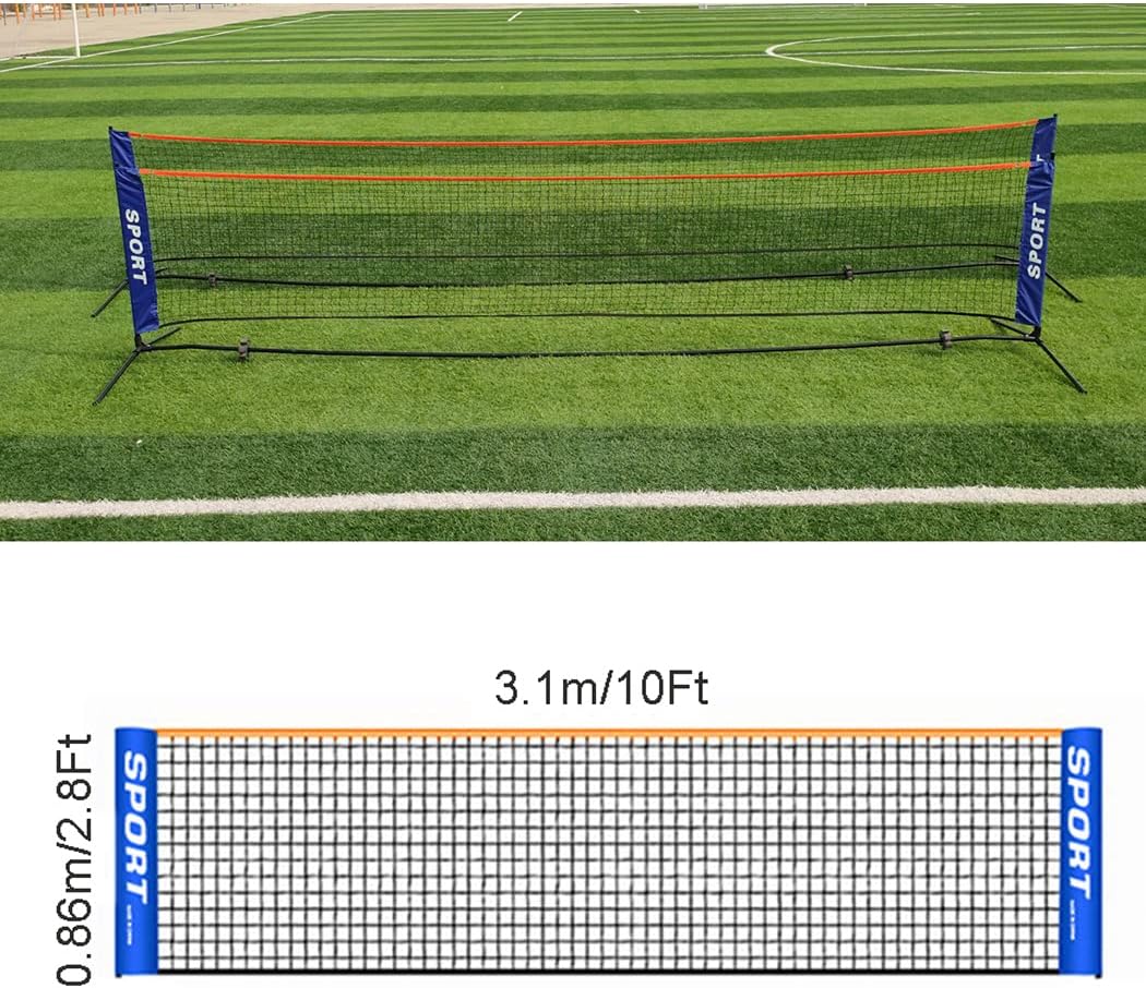 Now it's time for sweating with the flying shuttlecock to develop your love for the game! You'll be their favorite playmate this week!Features:- Supports several over-the-net sports: badminton, mini-tennis, volleyball, pickleball, or beach volleyball- Easy to set up and take down in minutes- Stable structure, woven nylon rope, small mesh, lasting & durable- The set includes a badminton net and poles, so you can set up a badminton court in the backyard, park, beach, or gym.Parameter:Product Name: Portable Tennis Net/Badminton NetNet size: 3.1m/10ft, 4.1m/13.5ft, 5.1m/16.7ft, 6.1m/20ftMesh size: 3.8cmMaterial: Polyethylene (PE)Color: black meshApplicable venues: all kinds of venues can be usedPacking List: 1* Portable Sports Net Set