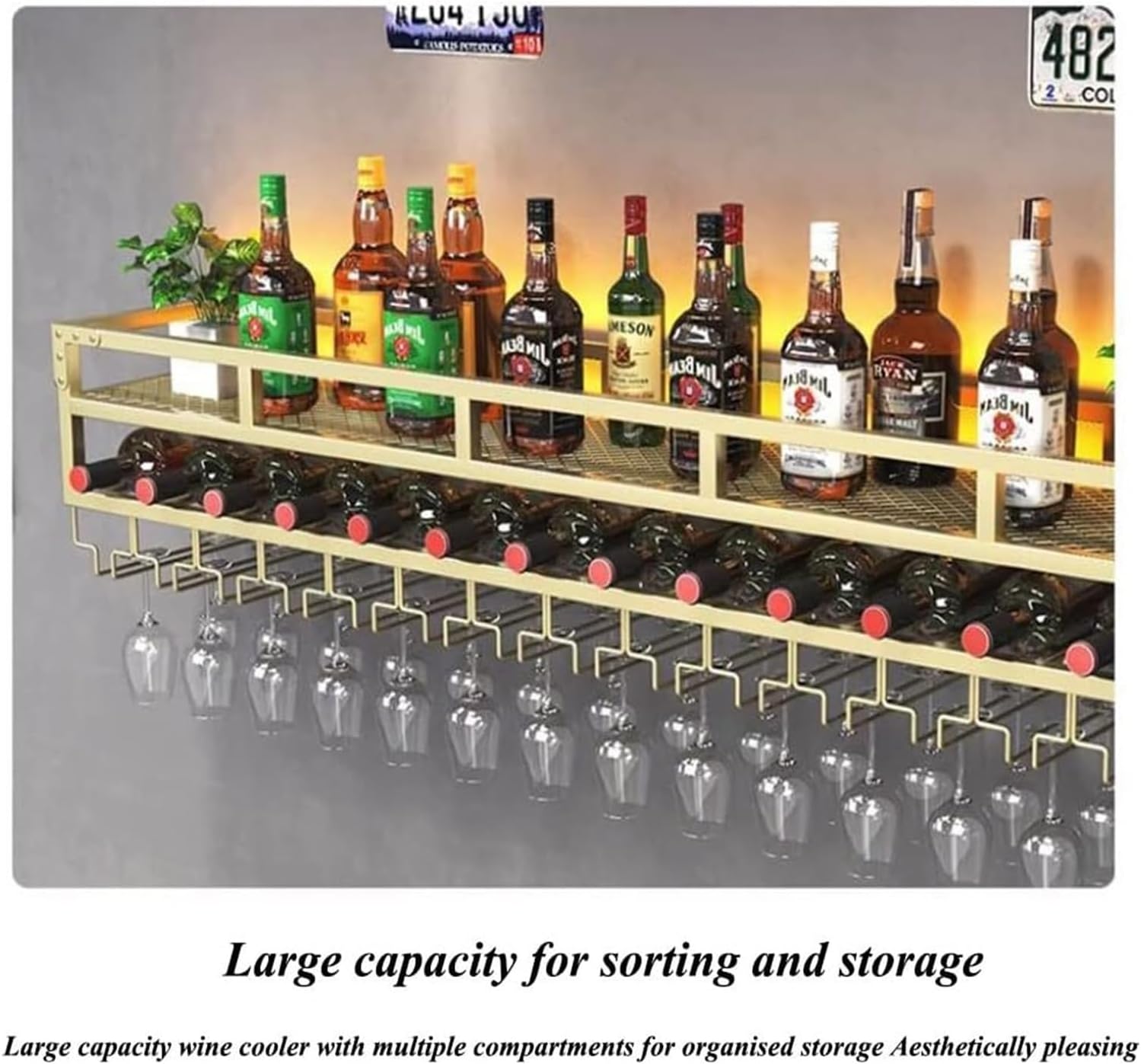 Versatile Use: Our ceiling-mounted rack is not only suitable for storing wines and bottles at home but also widely applied in commercial scenes such as bars, cafes, hotels, restaurants, commercial cellars, and various high-end clubs. With this rack, you can enjoy a good taste of wine anytime you want. Perfect Gift: This wine rack is perfect for the kitchen/living room, and it is also a gift for wine lovers. PRODUCT PARAMETERS Name: Wine rack Material: lacquered and thickened iron frame Features: Strong and durable Size: 60-200cm long, 25cm wide Colour: Black , Gold PACKAGE INCLUDE: Hanging Wine Rack x 1 Note: The picture is only for effect display, the package only contains 1 shelf SERVICE: If the product has any quality problems, or if you think the product is inconsistent with our description, please feel free to contact us, We will provide you with a satisfactory solu