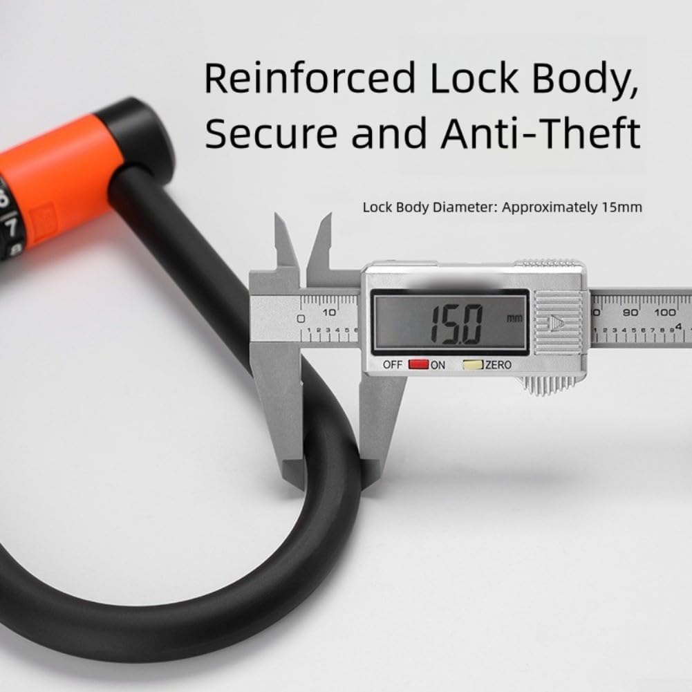 Features:*For for Durable: Made from high-strength steel and equipped with a zinc alloy lock cylinder, this U-lock offers superior durability and tamper resistance, your bike is always well protected.* Comfortable protection: The exterior is wrapped with soft silicone, providing a protective barrier to prevent damage to the bike frame while providing a comfortable grip for easy operation.* Waterproof: Designed for everyday use, this lock is waterproof to reduce the risk of rust and is suitable for all weather conditions to for ensure long-term durability.* Advanced security features: This lock features a four-digit combination lock, providing thousands of potential combinations, enhancing security and making it more difficult for thieves to crack.* Versatile design: Available in six bright colors, this stylish lock not only protects your bike, but also complements your personal style, making it suitable for a variety of applications just bicycles.Specifications:*Product name: U-shaped password lock*Material: Lock body: alloy steel + silicone, lock core: zinc alloy*Size: 18.3x12.8x2.7cm, weight: 510g*Color: black, black orange, gray, blue, green, pinkPackage Content:U-shaped lock*1, lock ring clip*1, lock frame*1, steel cable*1