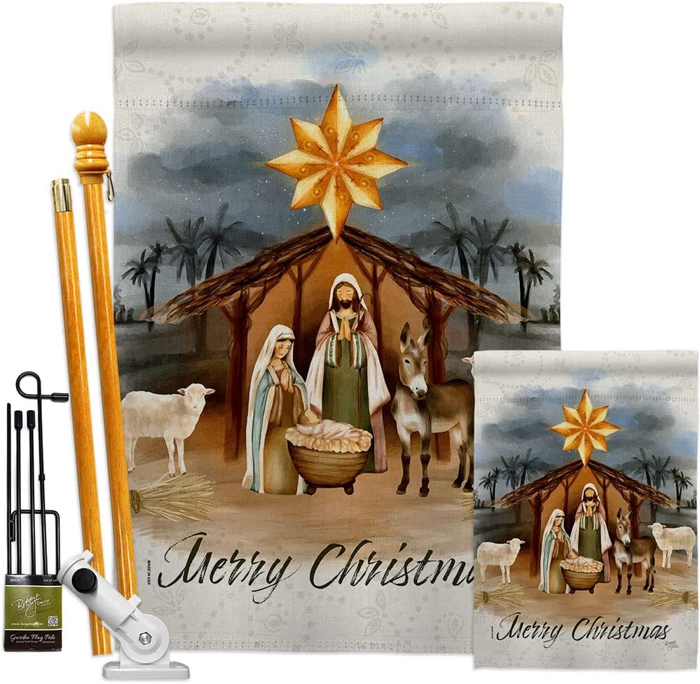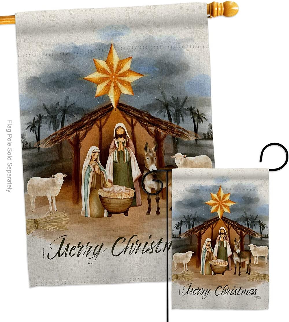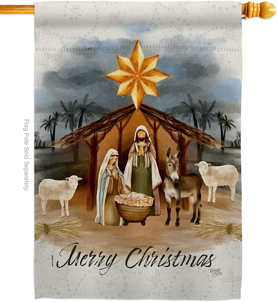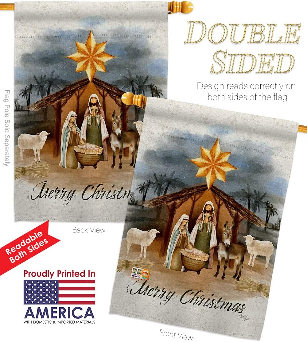 Nativity Beautiful Large House FlagBreeze Decor have variety of House Flag for all occasions. Uniquely design for hanging indoor or outdoor use. We are committed to offering you exceptional values. Our customers enjoy displaying our House Flag for longer periods. Specification: Theme: Nativity Size: House Flag 28" x 40" Print: Double-Sided Readable: Readable Both Sides Material: Weather Resistant 3 Layers Blockout Stitching: Double Stitched Display: Vertical Hang Type: Sleeve Artist: Schal Lee Special Features: Origin: Made In USAPackage Include: 1 pc x House Flag 28" x 40" Package Decorative FlagsFor more than a decade, we’ve been dedicated to manufacturing flags with no comparison in quality and beautiful designs. Our flags are made with our Pro Guard material that is soft to the touch and designs can be read correctly on the flag. A feature that our customers will love. We are committed to using eco-friendly inks that won’t leave a foot print in our environment. MPN: BD-NT-H-114238-IP-BO-D-US20-BD 14238 64238