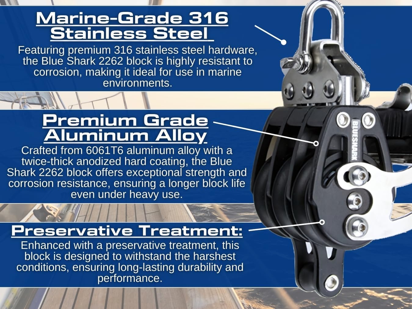 • Durable Stainless Steel Hardware: 316 stainless steel components enhance strength, durability, and resistance to rust and corrosion, ideal for marine environments.