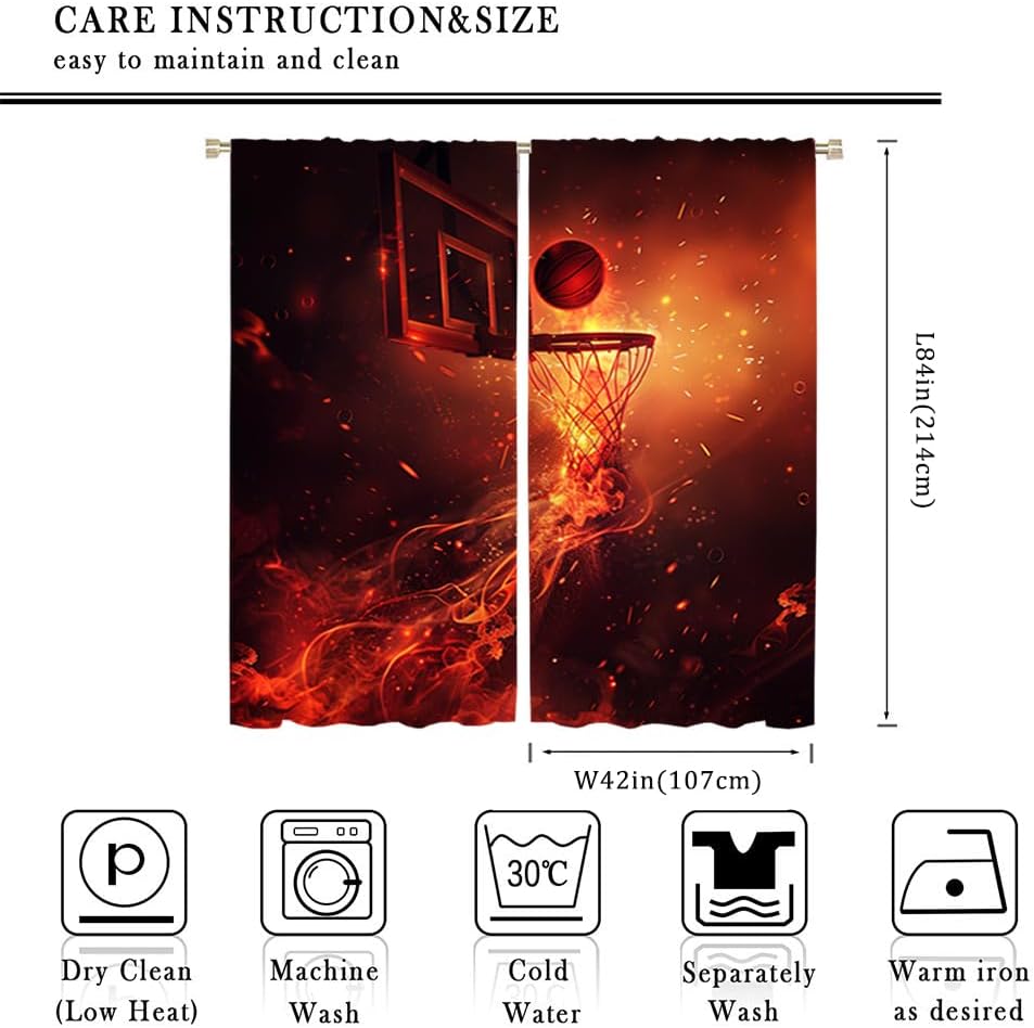 brebasf This Cool Orange Basketball curtain combines the latest fashion trends with groundbreaking performance technology to provide you with the best possible home environment without compromising on style! Total size: 45"" L × 42"" W (114cm × 107cm),Includes two pieces, each of which measures:45"" length × 21"" width (114cm × 53.5cm). Total size: 54"" L × 42"" W (137cm × 107cm),Includes two pieces, each of which measures:54"" length × 21"" width (68.5cm × 53.5cm). Total size: 63"" L × 42"" W (160cm × 107cm),Includes two pieces, each of which measures:63"" length × 21"" width (160cm × 53.5cm). Total size: 63"" L × 55"" W (160cm × 140cm),Includes two pieces, each of which measures:63"" length × 27.5"" width (160cm × 70cm). Total size: 63"" L × 63"" W (160cm × 160cm),Includes two pieces, each of which measures:63"" length × 31.5"" width (160cm × 80cm). Total size: 72"" L × 63"" W (183cm × 160cm),Includes two pieces, each of which measures:72"" length × 31.5"" width (183cm × 80cm). Total size: 63"" L × 72"" W (160cm × 183cm),Includes two pieces, each of which measures:63"" length × 36"" width (160cm × 91.5cm). Total size: 84"" L × 84"" W (214cm × 214cm),Includes two pieces, each of which measures:84"" length × 42"" width (214cm × 107cm).1. Made of durable polyester fiber,soft and light. 2 The package includes: 2 panels. Curtain material: 98% polyester fiber. Provide a beautiful appearance for your bedroom,living room or office. 3. The curtains are grommet,which can be used with any standard curtain rods. Our products can be used as living,room curtains. Mother's Day,Christmas,Halloween,Thanksgiving,New Year's party decorations at home! We believe that you will like this curtain as much as we do. If you are not satisfied with our products,please contact us,we will solve any problems encountered by the products for you,so that you are satisf