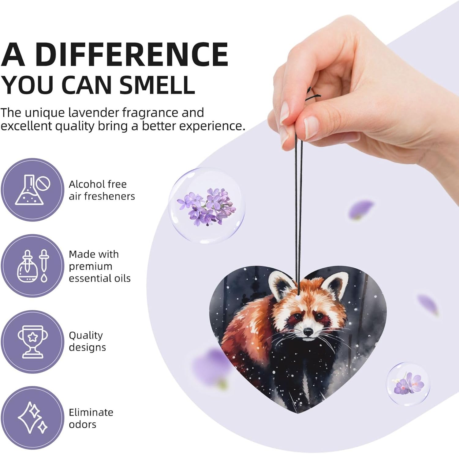 unobstructed vision: this Pictures of Red Pandas rearview mirror scented fresheners doesn't obstruct your vision while driving, ensuring a safe and comfortable journey every time.easy hang: we've included a convenient rope for hanging, making it super easy to attach this christmas air freshener wherever you prefer. No fuss, no mess - just hang and enjoy the fragrance.incredible package deal: this rearview mirror pendant aromatherapy tablets package includes 6 pieces in 6 captivating designs and 1 refreshing scents (lavender). Experience a variety of delightful fragrances that will keep your surroundings smelling wonderful throughout the day.environmental protection: the car air fresheners for women smell can last for about 1-2 weeks. When the smell fades, you can add your favorite perfume. Continue to use, reusable6 pcs included: you will receive 5 individual shoe cabinet fresheners, each in its own package; enjoy consistent scents for nearly a year, or share them with your friends or families