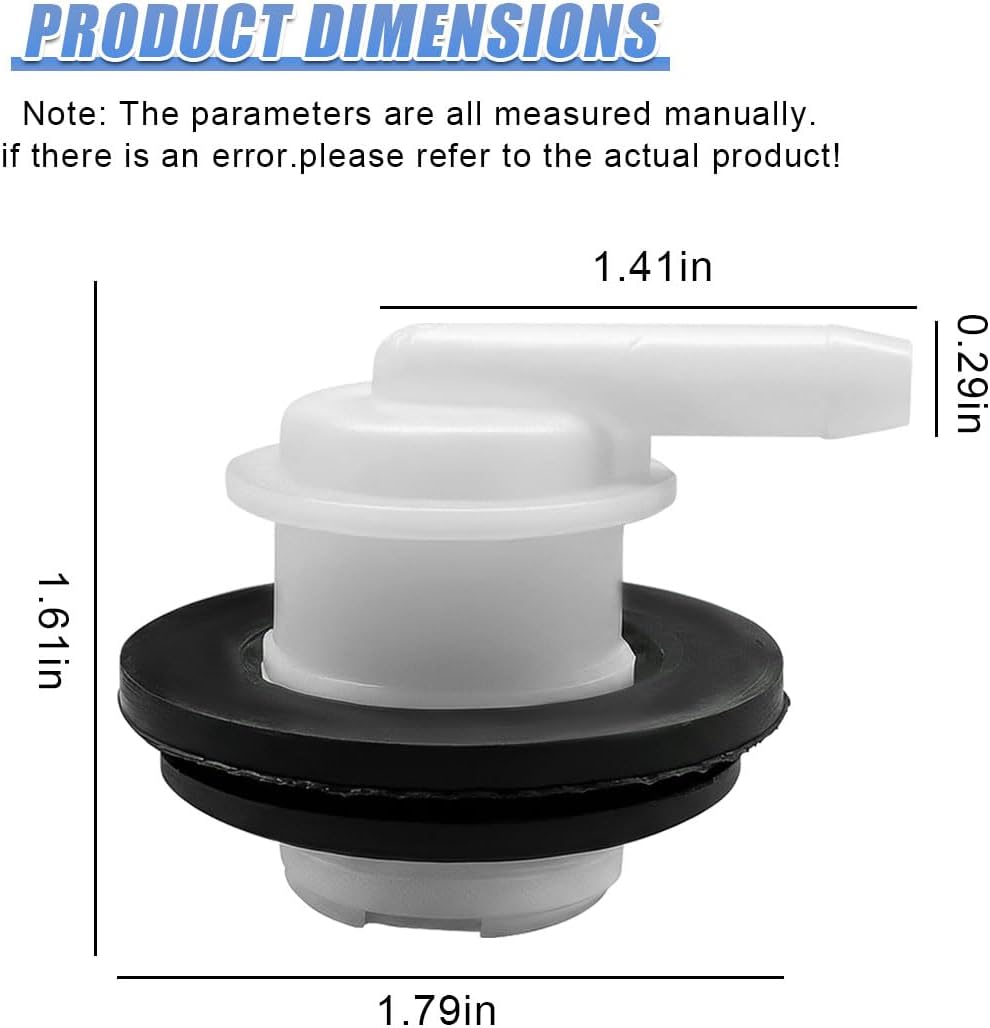 This fuel tank vent valve and seal ring set is tough, wear-resistant, and not prone to aging, and has a long service life.SPECIFICATION:Brand: KPFILEHName: Car Fuel Tank Vent PlugColor: Black&WhiteMaterial: ABSSIZE: 1.79 x 1.61 inchApplicable: Most vehiclesFEATURES:-This fuel tank vent valve is small in size, light in weight, and easy to carry, and does not take up space.-This fuel tank ventilation valve and grommet set has a smooth surface, which is easy to clean and maintain.-This fuel tank vent plug has good sealing performance, which can reduce potential safety hazards.
