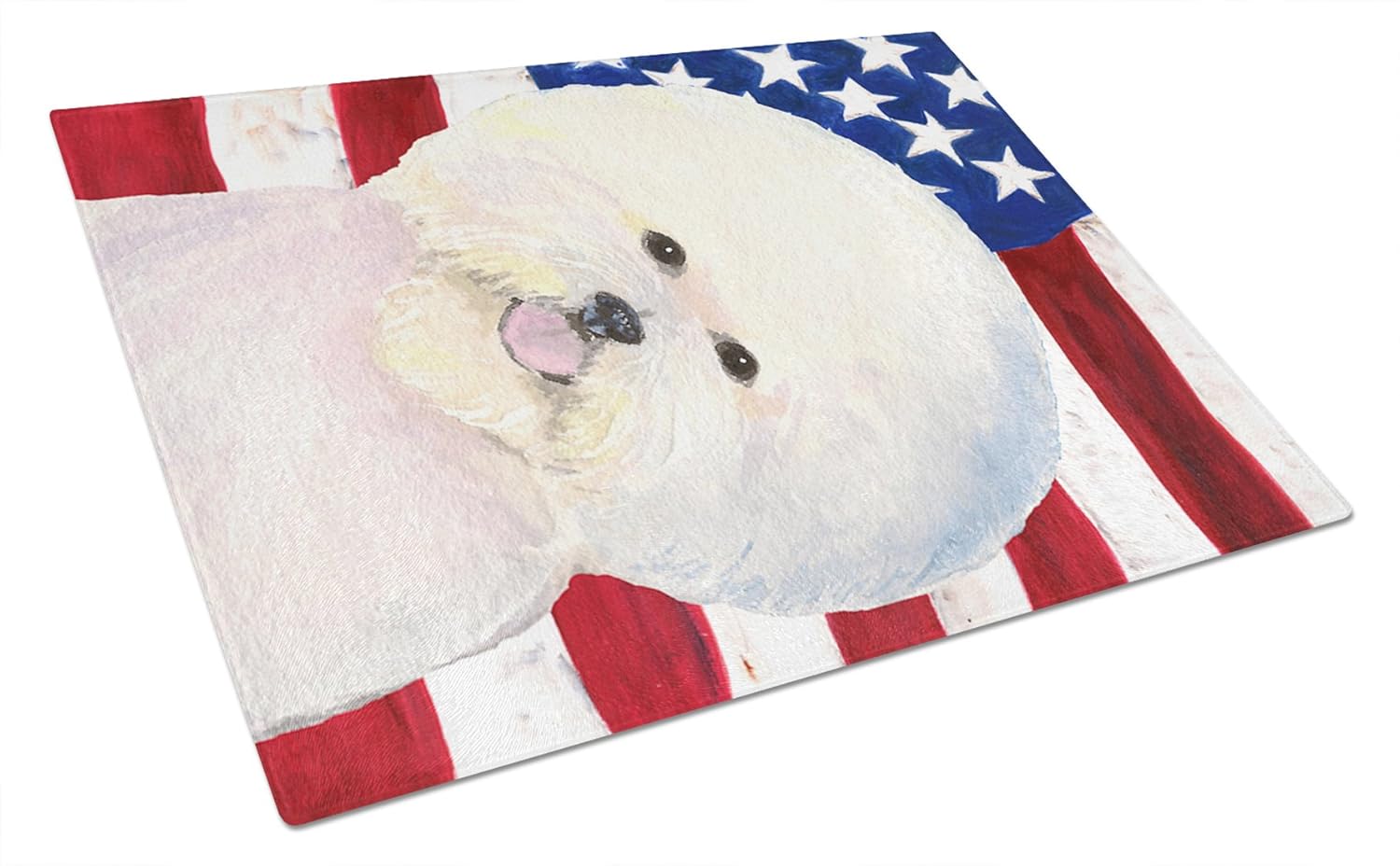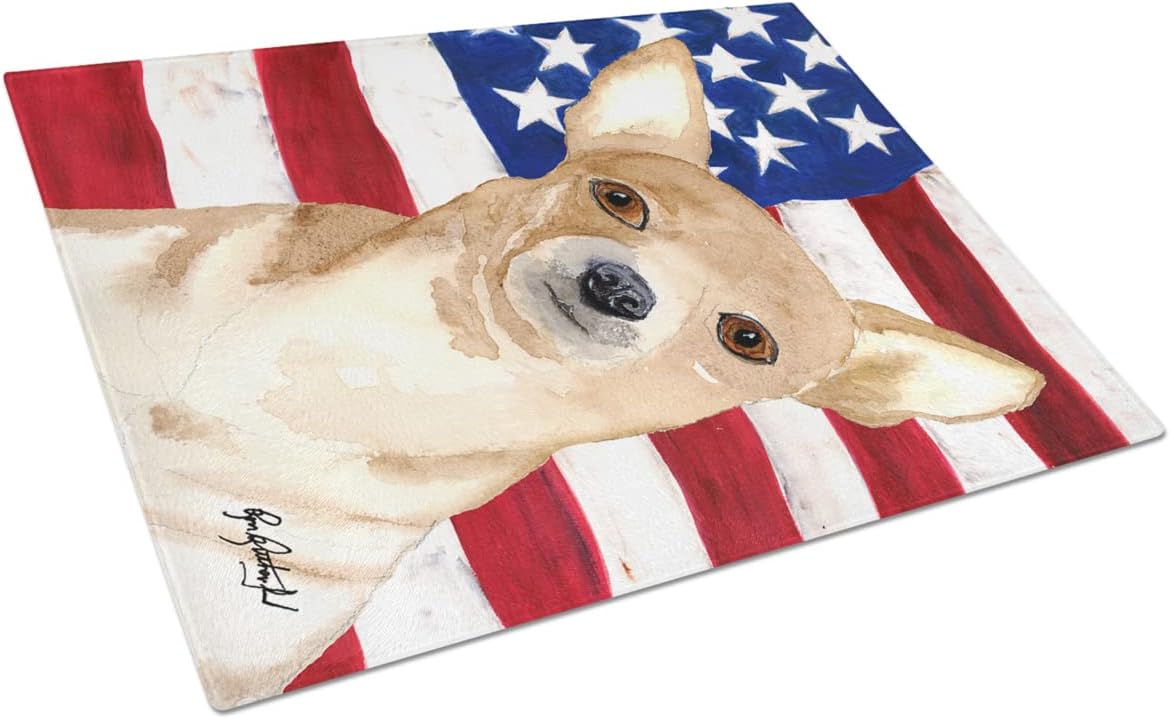 Large Tempered Glass Cutting Board is heat resistant and hand wash only This chopping board is bright and colorful. Made of tempered glass, these unique cutting boards feature artwork from some of your favorite artists prints. 15 inches high and 12 inches long, they will beautify and protect your counter top. Heat resistant, non skid feet, and virtually unbreakable!.