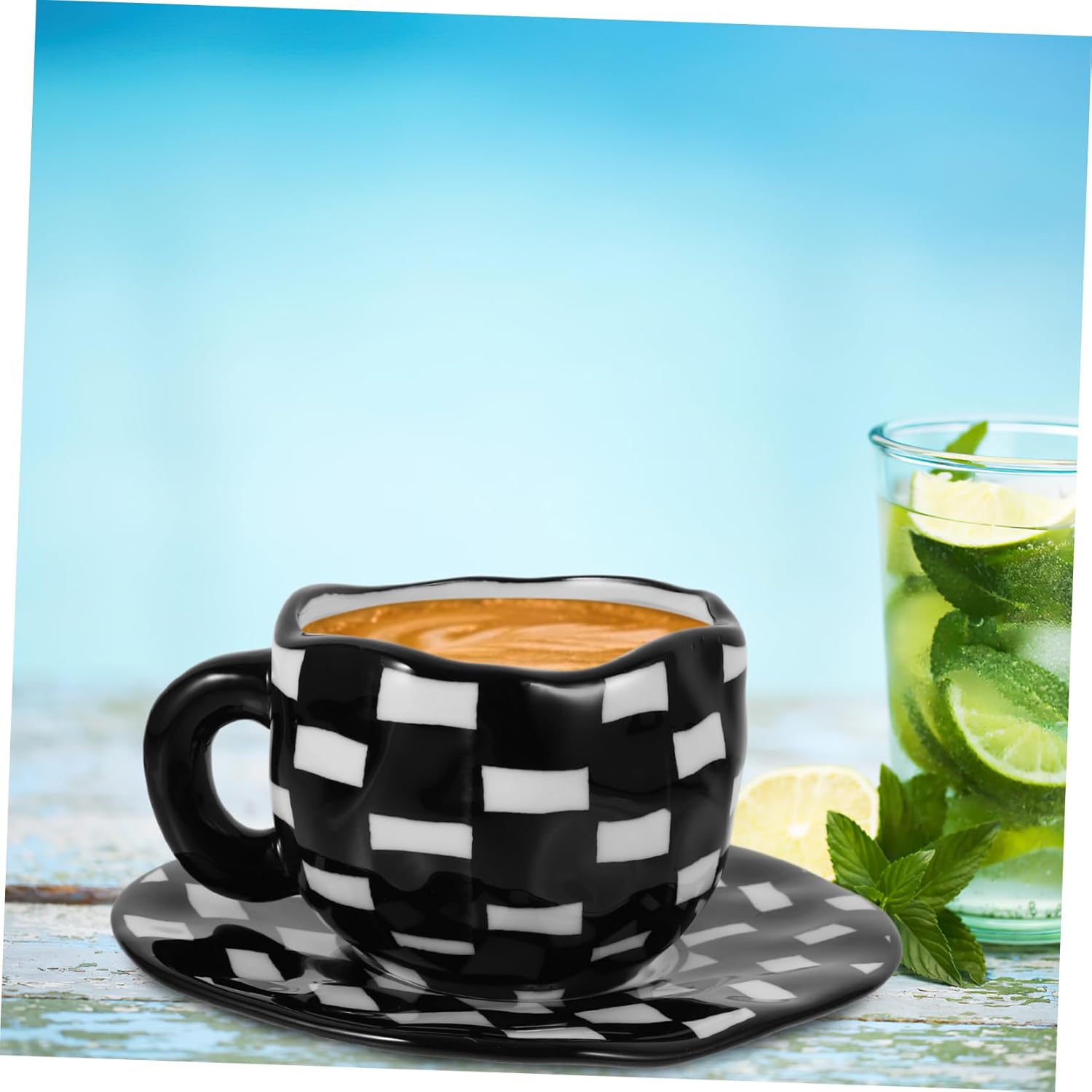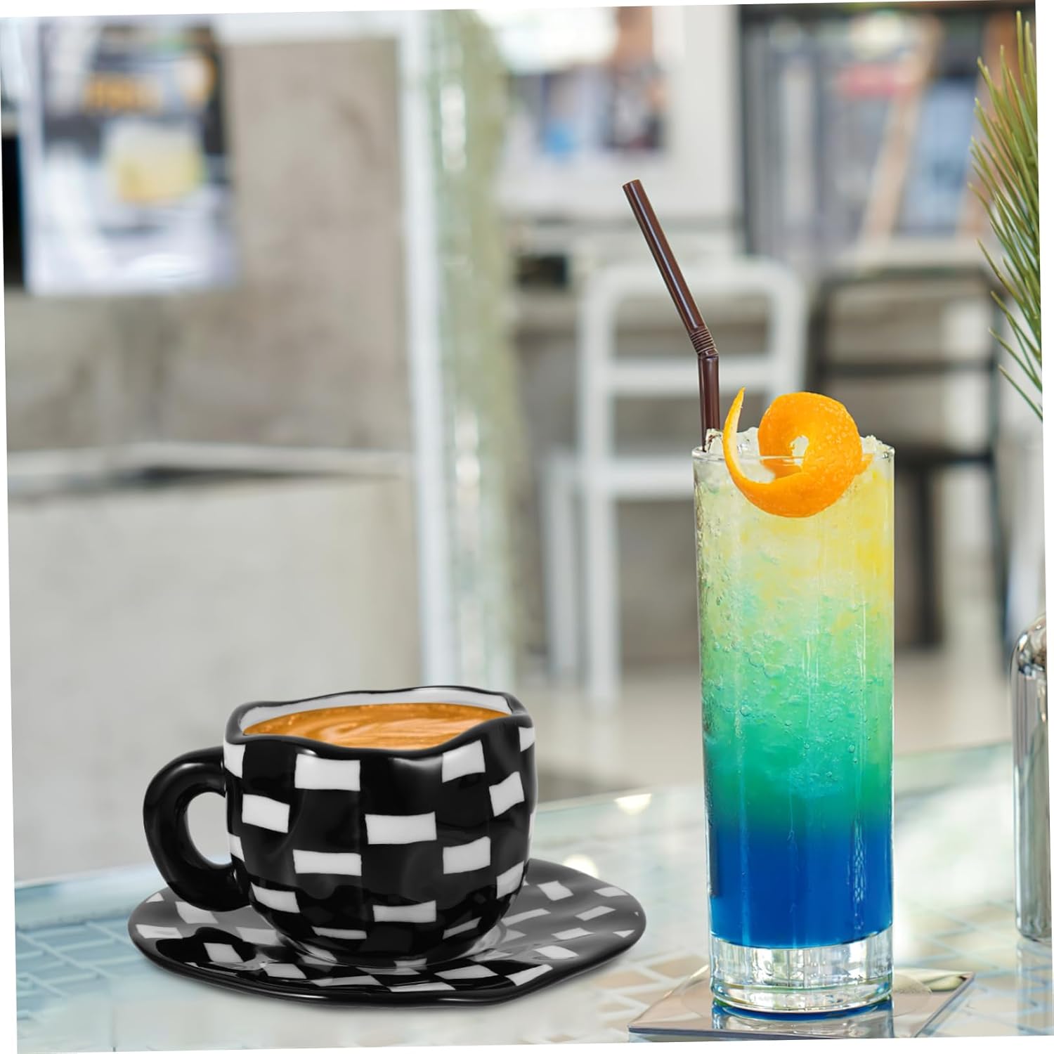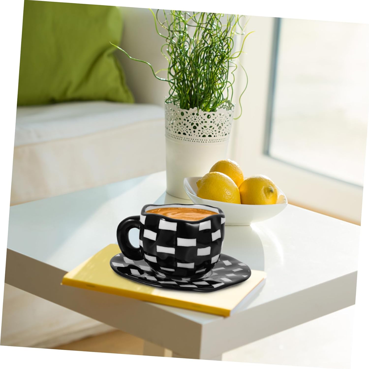 Package Include 1 × saucer 1 × cup Characteristics -Size:12.20X9.00X7.50cm/4.79X3.54X2.95in (Cup) Cartoon Mug -Size:16.00X15.20X1.00cm/6.29X5.97X0.39in (Saucer) multi-function coffee mug -Color:Black Office Water Mug -Material:Ceramic Checkered Coffee Cup -The edges of the coffee cup are smooth, which will not hurt your mouth when drinking Ceramic Mug And Saucer Set. -The Coffee Cup is great for various drinks such as coffee, tea, water, milk, fruit juice etc Ceramic Mug. -The water mug is suitable for restaurants, cafe, dessert shops, home, office and other places cup with saucer. -A wonderful housewarming for your family and friends, they will be appreciated the Home Ceramic Mug. -Adoption of ceramic material, the coffee mug with saucer is sturdy and for long-term use, and easy to wash Milk Mug.Goods InformationBreakfast Cup Its fine craftsmanship and construction make it both strong and stylish, ensuring that your favorite beverage is always enjoyed in elegant style.Milk Mug This checkerboard ceramic mug set is not just a stylish addition to your kitchen but also a thoughtful for any occasion