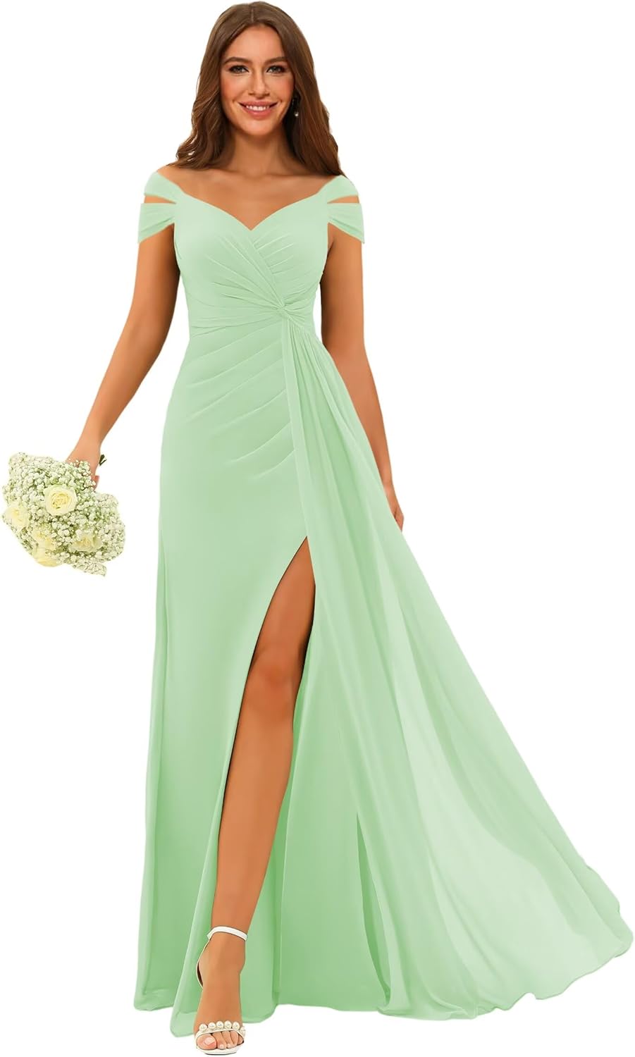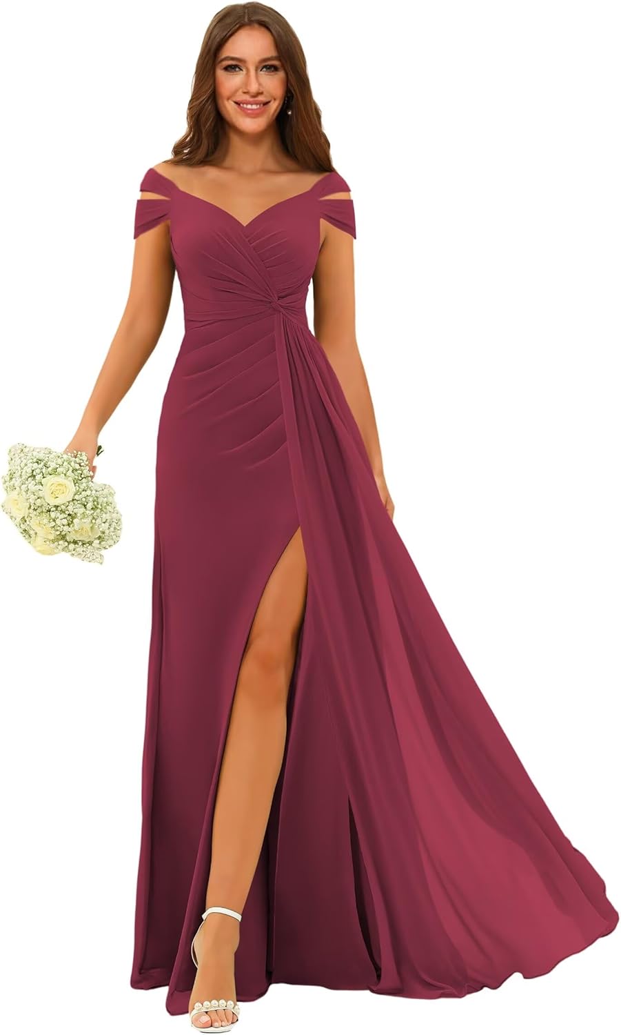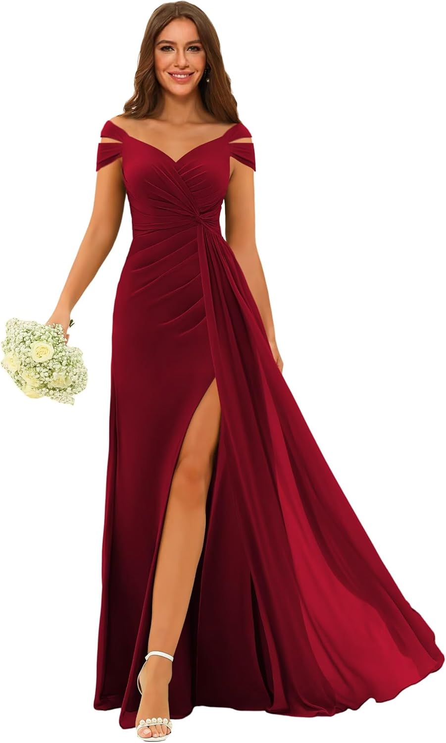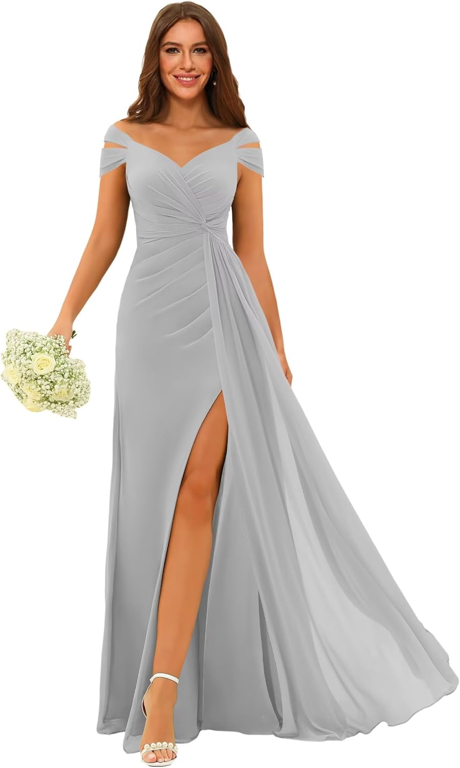 Welcome to Clothfun! We have 10 years of making bridesmaid dress,formal dresses,evening dress,party gowns,special occasion dresses and wedding dresses, just buy with confidence and we will be pleased to serve you. Product Features:1.Fabric:Soft Chiffon 2.Neckline:Off the Shoulder 3.Sleeves:Sleeveless 4.Feature:Pleated Bridesmaid Dresses with Slit,Off the Shoulder Chiffon Formal Dresses for Women 2026,Simple A Line Pleated Maxi Party Dresses5.Silhouette: A-Line6.Back Design:Lace-up Back Closure How to choose size: Measure your body and compare it with our size chart.
