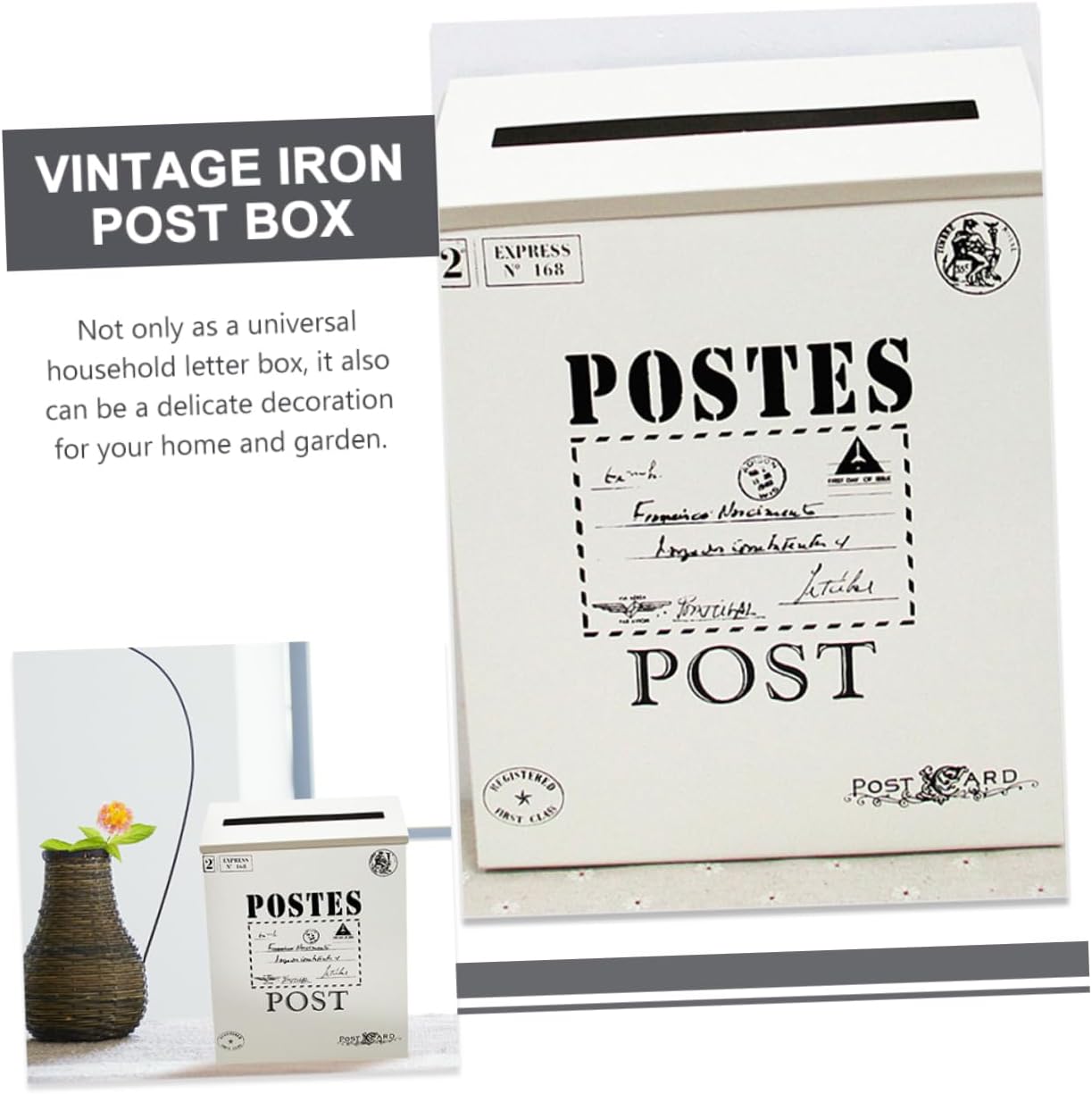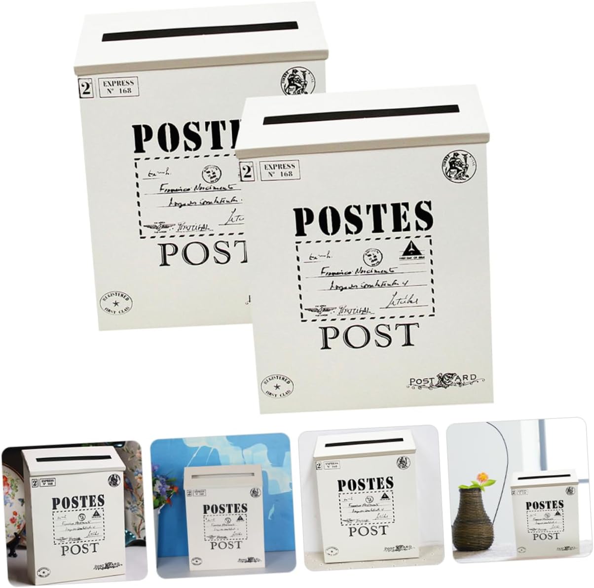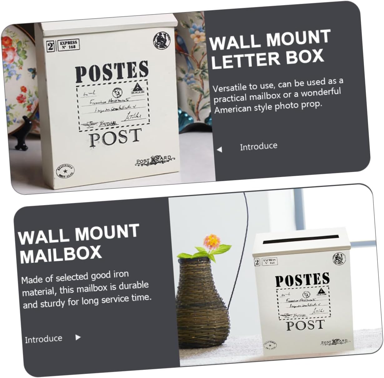 Package Include 2 x mail boxes Features -Color:White household mailbox -Material:Iron mailbox wall mount -Size:29.00X21.60X6.00cm/11.40X8.49X2.36in wall mount mailbox -Retro style, simple design, it is lightweight and wall-mounted, space-saving and convenient wall mailbox. -Made of great iron material, the vintage letter box is durable and sturdy, safe and wall mount iron mailbox. -With the vintage mailbox shape design, it also can be a wall decoration for your home wall mounted mailboxes for outside house. -With a proper storage capacity, you can put many mails and letters what you need mailbox flag for brick. -With its simple design and practical functions, it will win your love bring you a experience iron mailbox.Goods Informationhousehold mailbox It protects the letter .iron mailbox Very simple and ornamental.white mailboxes for outside Creative design is great for home use.wall mount mailbox Made of iron material, the wall mounted letter box is durable and practical use.wall mount iron mailbox Also can be a vintage letter box decoration for your garden or wall.wall mounted post boxes outside Wide enough to accommodate letters, mail and so on