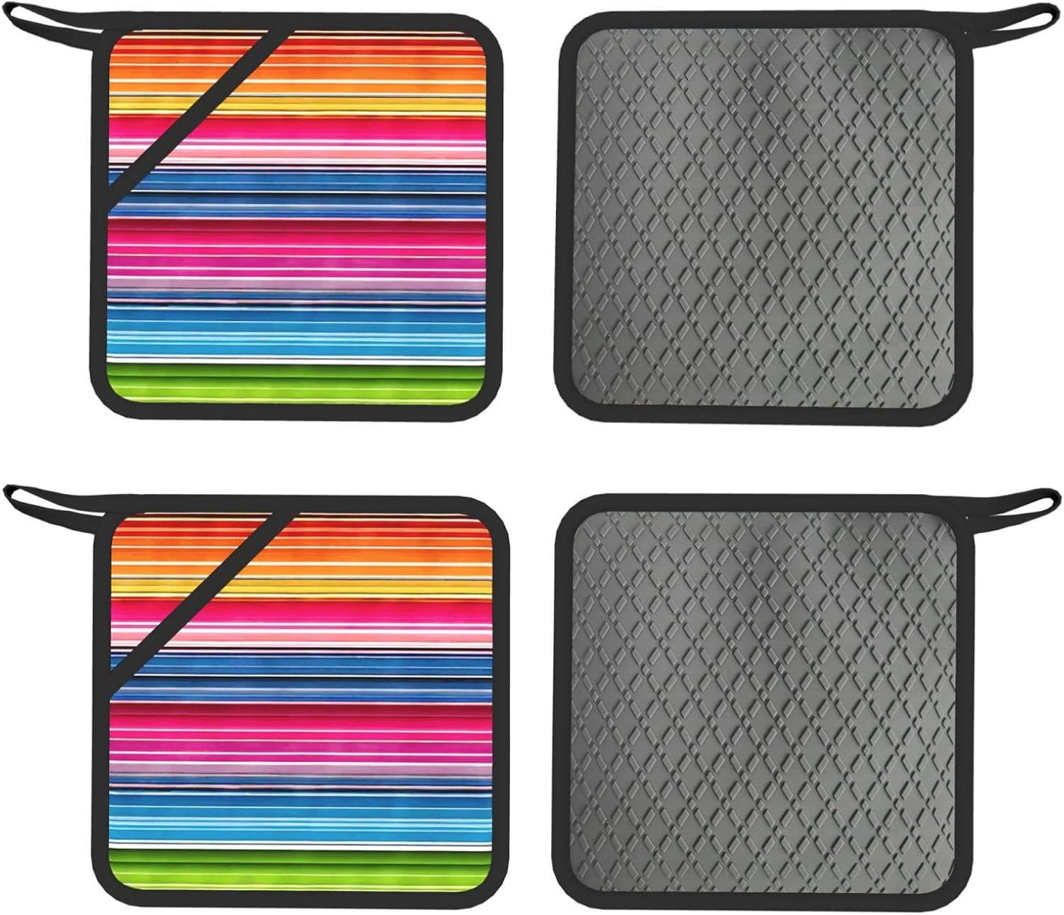 Upgrade your kitchen essentials with this oven mitts and pot holders set, designed for safe and comfortable handling of hot cookware. The set includes 2 heat-resistant oven mitts and 2 pot holders with pockets, making it a practical choice for daily cooking, baking, grilling, and microwave use.Crafted from high-quality polyester with thick insulated padding, these kitchen gloves deliver reliable heat protection up to 260°C. The soft quilted lining ensures comfort and flexibility, while the silicone palm design enhances grip and control when handling hot pots, pans, and trays.The non-slip silicone surface provides added stability, giving you confidence when moving hot cookware. Waterproof inner and outer layers make cleaning simple—just wipe clean or hand wash and air dry for easy care.Each piece features a convenient hanging loop for organized storage and quick access in your kitchen. Stylish and functional, this oven mitts set also makes a thoughtful gift for family and friends on holidays, housewarmings, and special occasions.