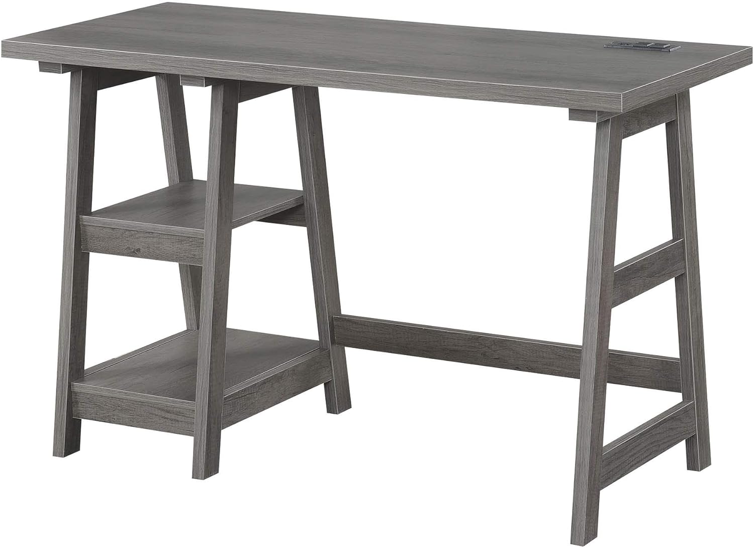 Improve your workspace with The Designs2Go Trestle Desk with Charging Station by Convenience Concepts! This contemporary design has no age limits and combines simplicity and functionality all in one. Thanks to the large surface top; there is ample space for a student who is studying or for those working from home. The charging station conveniently located on the desktop includes two standard outlets and two USB ports which can charge a phone; tablet; laptop and more! In addition; the power supply cord is 6 feet in length giving this desk the flexibility needed when it comes to placement. The left side of this piece feature two sturdy shelves giving extra space to store schoolwork or office essentials. Built to last; this unit was crafted from Particleboard and MDF. The Designs2Go Trestle Desk with Charging Station is available in a wide variety of bold colors that are sure to match with any current furnishings.