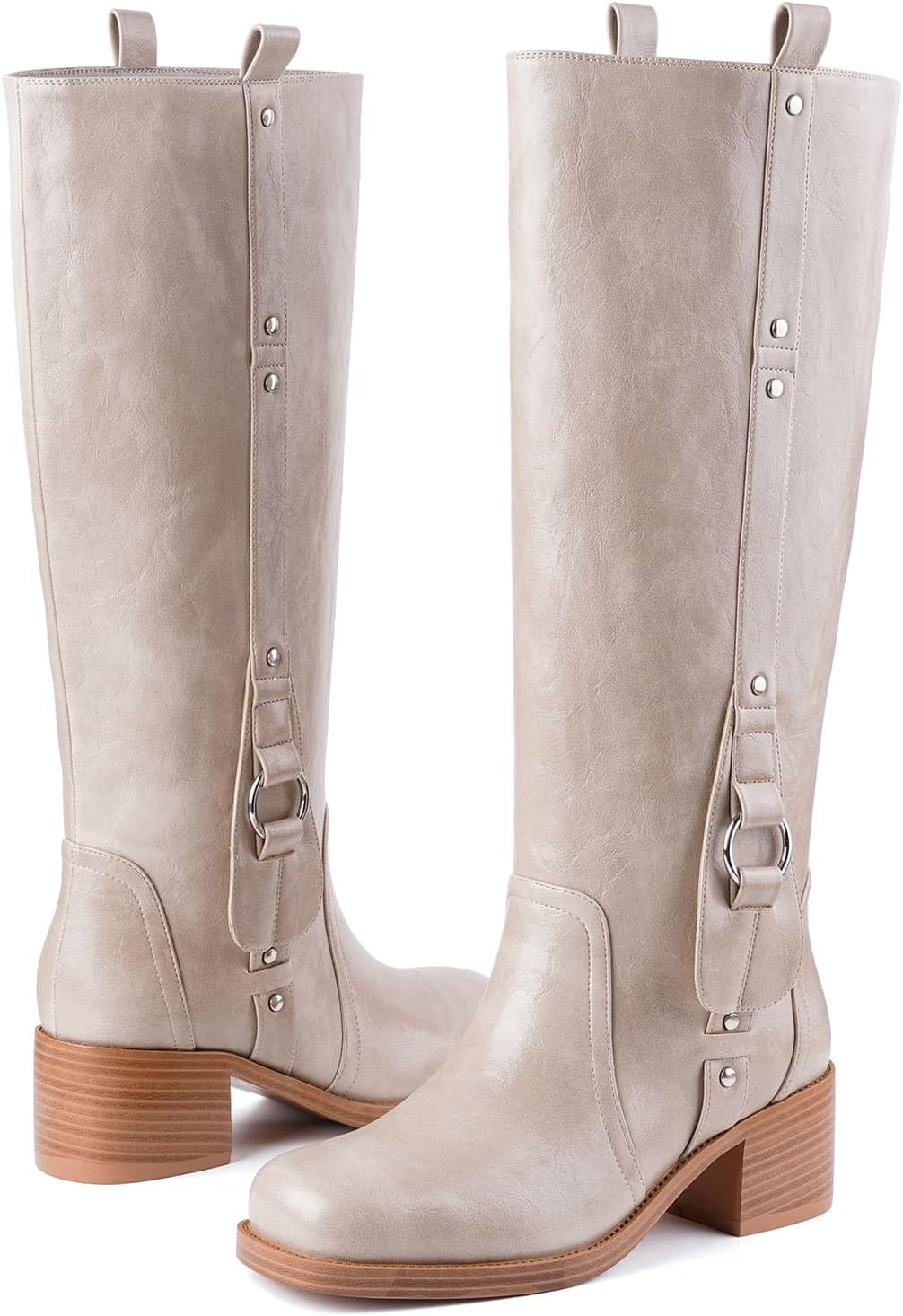 Experience the perfect blend of style,comfort and durability with our Knee High Boots. Our boots are meticulously designed for the modern woman who refuses to compromise. Whether navigating busy campus pathways, exploring the city, or enjoying a night out, these long boots are your go-to choice for unwavering comfort and head-turning style. The chunky heel provides a confident lift without sacrificing stability, while the slip-resistant outsole ensures you move with grace and safety on any terrain. Inside, the plush, soft-cushioned insole cradles your feet, offering all-day comfort. The convenient pull-on tabs make getting ready a breeze, effortlessly combining practicality with the sleek knee-high style that defines the iconic campus boot look. We've crafted these fall boots from high-quality materials to ensure they withstand daily wear and become a timeless piece in your collection. Product Details & Care: Heel Height:2.17 inch Style: Knee-High Boots with Chunky Heel Closure: Pull-On Tabs Insole: Soft, Cushioned insole for Comfort Outsole: Slip-Resistant Rubber outsole Material: High-Quality PU Leather