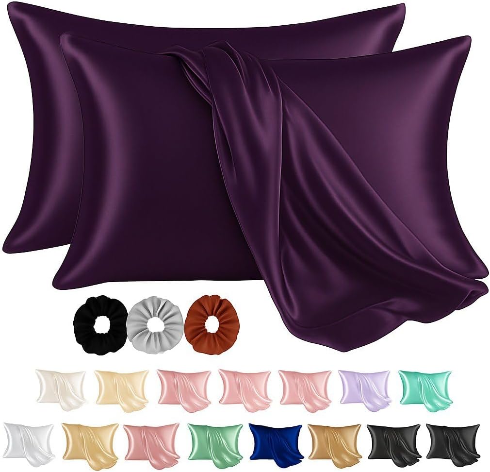 Transform your sleep experience with Craftelio’s 2 Pcs Satin Pillow Covers with 3 Free Scrunchies – the perfect combination of luxury, comfort, and care. Crafted from ultra-smooth, silk-like satin, our pillowcases are designed to reduce hair breakage, frizz, and sleep lines while keeping your skin soft and your hair tangle-free. The breathable, cooling fabric is ideal for all seasons, especially for hot sleepers. Each set includes 3 soft satin scrunchies that are gentle on your hair and perfect for daily wear or nighttime use. With a standard size fit (28x18 inches) and an envelope closure for a clean look, Craftelio offers both style and function in one beautiful package. Whether you're shopping for yourself or a thoughtful gift, this set is a must-have for anyone who values beauty sleep and self-care.