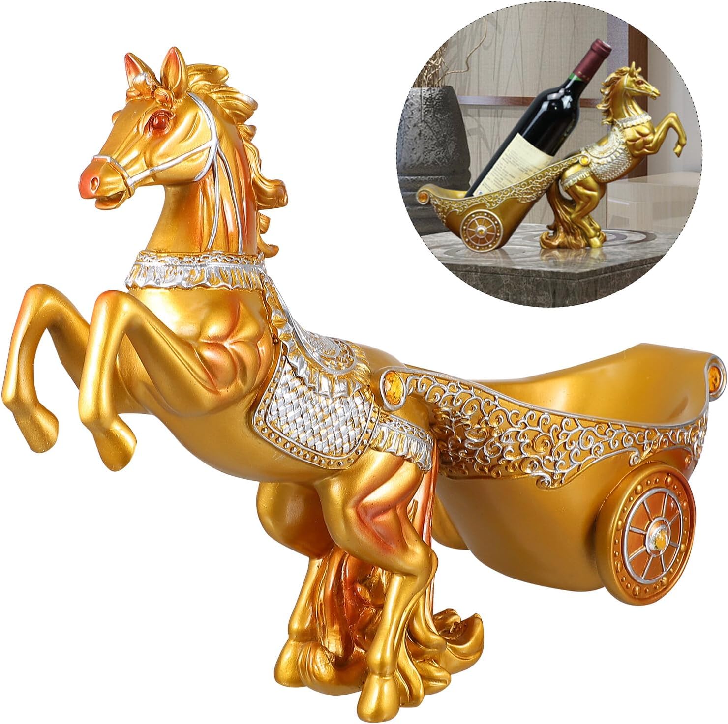 Package Include 1 x wine rack Characteristics -Material: Synthetic Resin Decorative Bottle Shelf. -Product Info:Red wine rack -Color: Golden Bar Decoration. -Size: About 38.00X12.50X10.00cm/14.93X4.91X3.93in Wine Storage Rack. - It can also be given as a to friends who like to collect wine for storage and display Bottle Rack. - This horse-drawn carriage wine rack is made of material, with a simulation design Red Wine Rack. - The bottom is firm and strong, and the shelf is an rack, which is easy to take and move Wine Rack. - The driving shape gives it a strong and safe structure, which prevents it from shaking, tilting or falling Desktop Display Rack. - It is suitable for any space in the kitchen, restaurant, wine cabinet decoration, front desk decoration or wine cellar Wine Holder.Goods DescriptionRed Wine Rack Lovely and stylish design can make your space unique.Bar Decoration This is a perfect new house party .Wine Cabinet Rack This a creative wine rack.Carriage Wine is a perfect decorative wine rack for bar, kitchen, pantry, wine cellar, cabinet, tabletop, etc.Wine Holder Environmentally friendly, safe