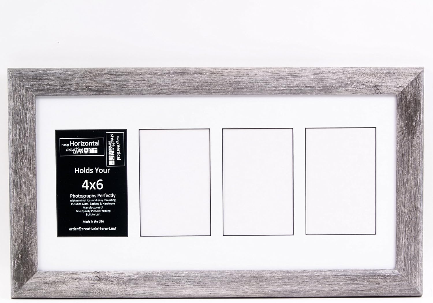 CREATIVE LETTER ART Frames are Handmade with molding manufactured here in the US. They include Full Strength Washed Glass, Custom Cut Mat for your 4x6 Photographs designed for minimal loss and easy mounting, Corrugated Black Backing with installed saw tooth hangers for up to 5 Letters or a wire kit for larger frames. If you have any questions, please don't hesitate in contacting us. With our 100% Satisfaction guarantee you can buy with confidence knowing your new frames were built to last a lifetime. Drop us a line if you have any questions, Thank you