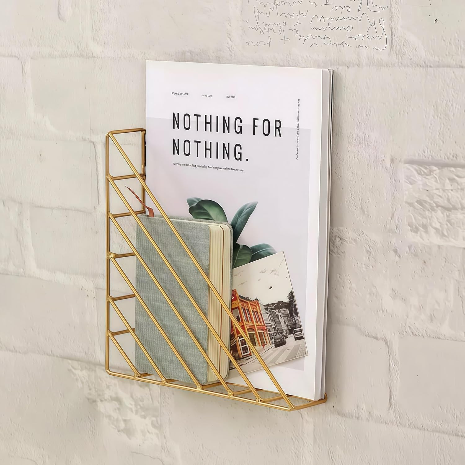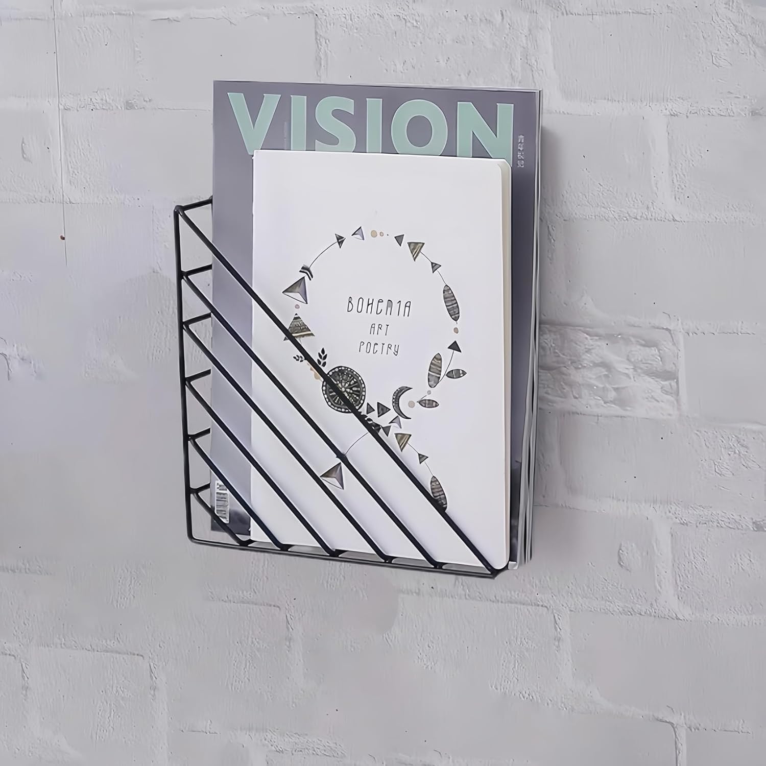 Non-perforated ironwork wall-mounted, bedroom bookshelf, newspaper and book rack, children's picture book rack, display rack