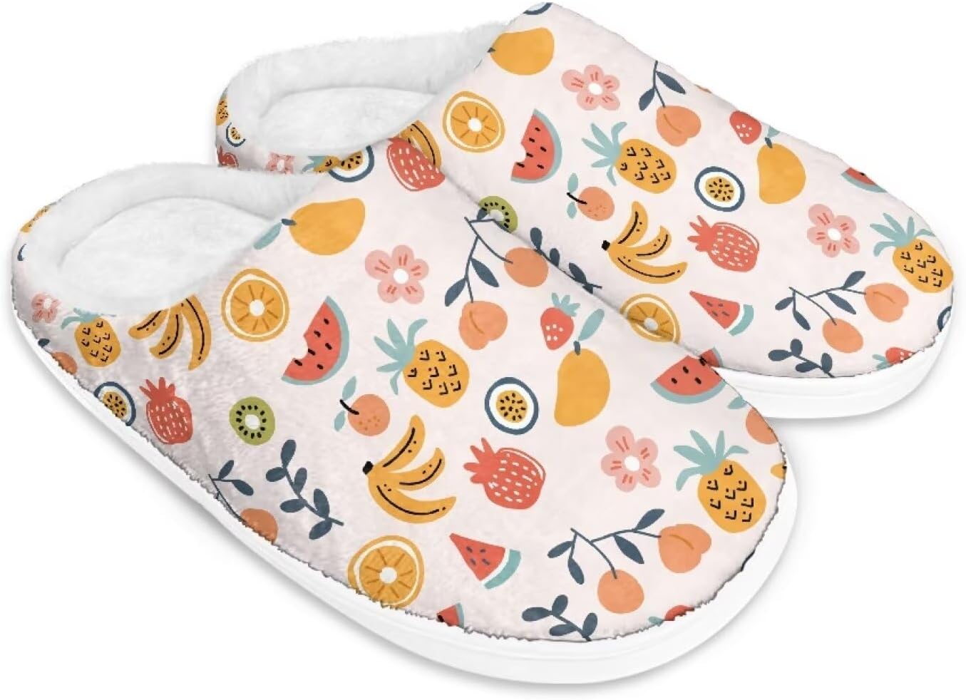 Multi-Theme Multi-Color Slippers -Cozy and Warm: With a fluffy fur lining, these slippers offer warmth and comfort, making them ideal for wearing in the bedroom or around the house. -Soft: Our slippers are made from fluffy materials that feel like walking on clouds. -Slip-Resistant Sole: The slip-resistant sole ensures stability and safety, allowing you to confidently wear these slippers both indoors and outdoors. -Gift: An ideal gift for you or your loved ones at Christmas, New Year, birthday and Valentine's day. -A Variety of Theme Design: Our slippers have a variety of colors and themes to choose from, such as palm leaves, strawberries, rabbits, fruits, hearts, Cowhide prints, plants, American flags, Easter eggs, maple leaves, clover, bananas, cakes, doughnuts, stars, the moon, Santa Claus, Christmas trees, snowflakes, reindeer, dolphins, tulips and marble. In addition to various daily styles, there are also holiday styles such as Christmas and Valentine's day. Size: 34 35-36 37-38 40-41 44-45 46-47 48 49-50 Package includes: 1 Pair Slippers Notes: Manual measurement, please allow a slight size error. There may be slight differences in color due to the differences in the screen display.