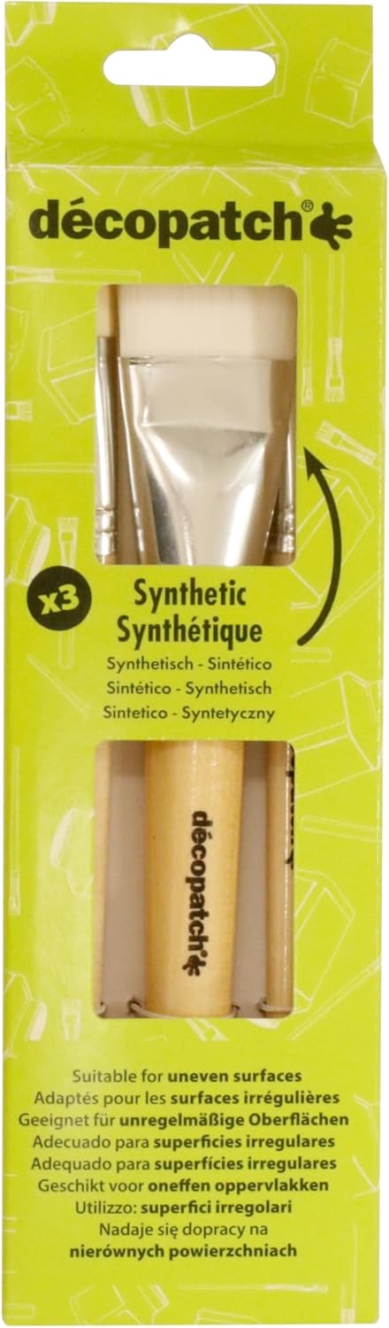 Product Description Décopatch is a French brand belonging to the Clairefontaine Rhodia group. We offer quality products for customization, decoration and creative hobbies.A real essential tool for impeccable achievements.With these nylon brushes, you will get an even application with minimal streaking.Suitable for flat surfaces.Wash the brushes in lukewarm water with washing up liquid - dry them head up for long term use. If the brush is stuck, use a little mild solvent.Contents: 3 brushes 20.5x3 cm. Set Contains: 1 x Large Paintbrush N.30, ref PC30O.