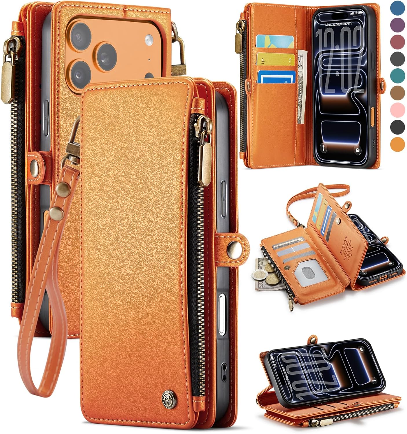 | Additional Features | Durable comfortable material, Lanyard Wrist Strap, RFID Blocking 9-Card Holder, Stand Function, Wallet with Zipper Pocket |