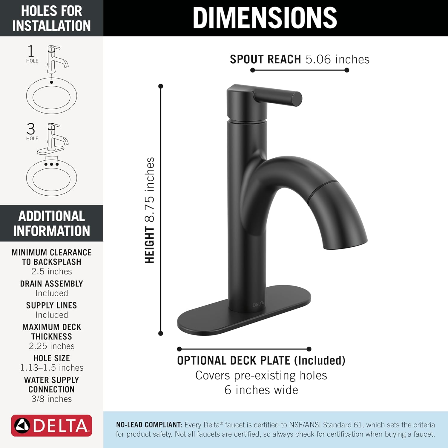 The smooth lines and elegant form of the Delta® Nicoli® bath collection add a modern touch to your bath while an integrated pull-down spray wand simplifies cleanup. Delta WaterSense® labeled faucets, showers and toilets use at least 20% less water than the industry standard—saving you money without compromising performance. You can install with confidence, knowing that Delta faucets are backed by our Lifetime Limited Warranty.